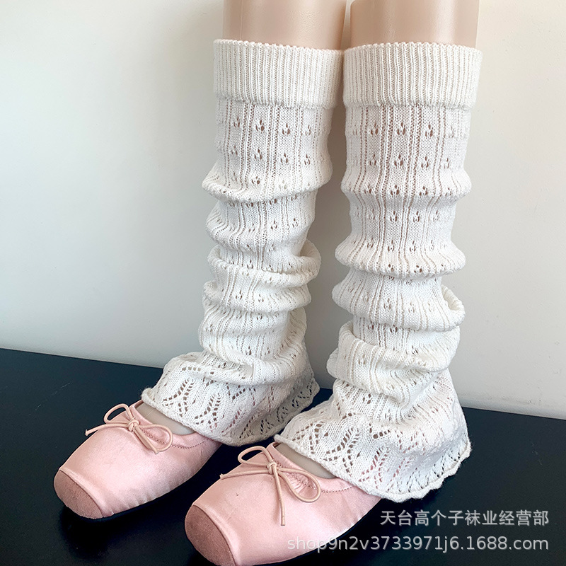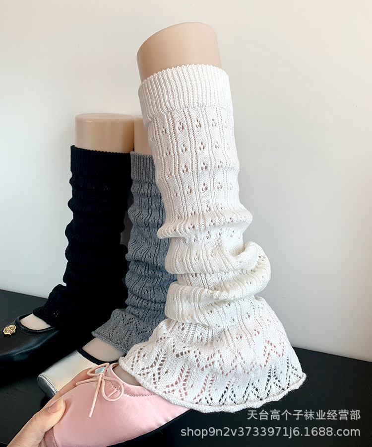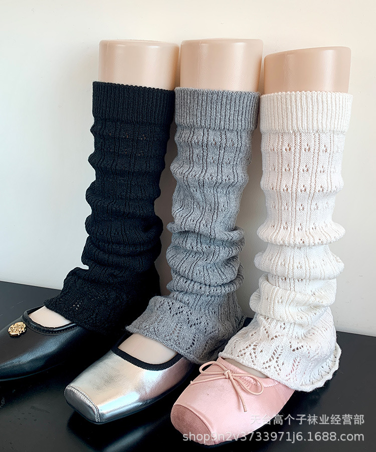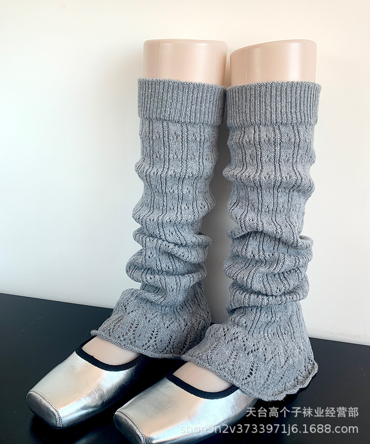 한국식 회색 중공 봄과 가을 니트 양말 Y2K 흰색 종아리 종아리 입 미우 스타일 미드 튜브 양말
