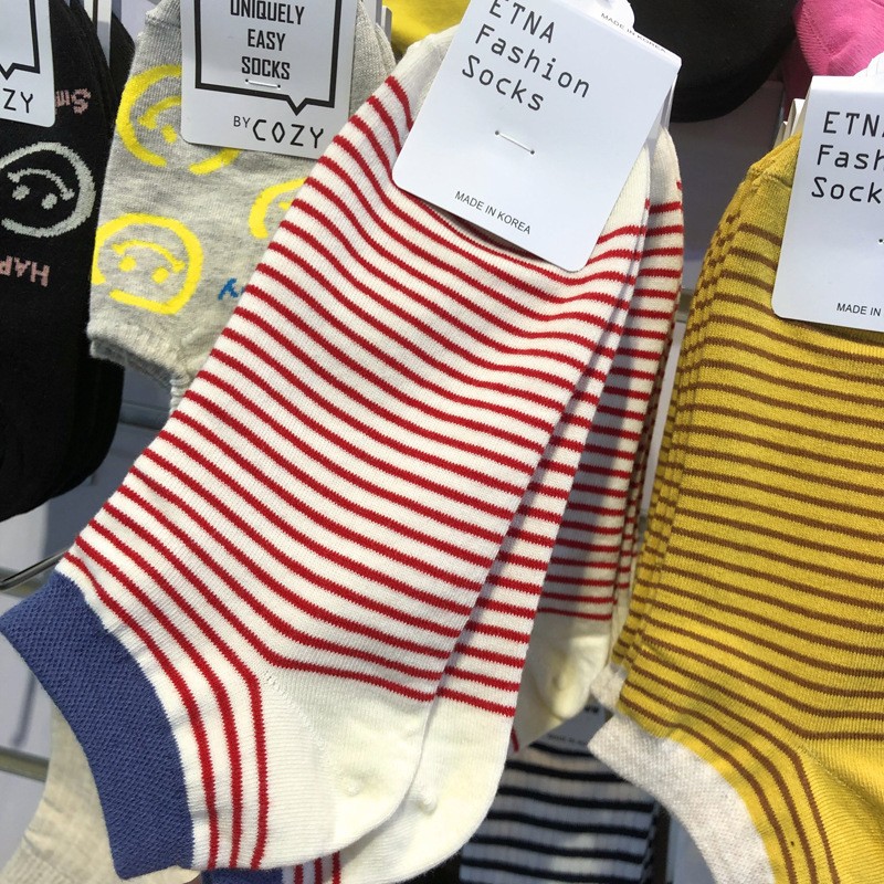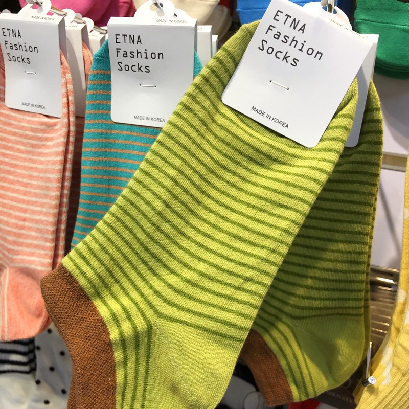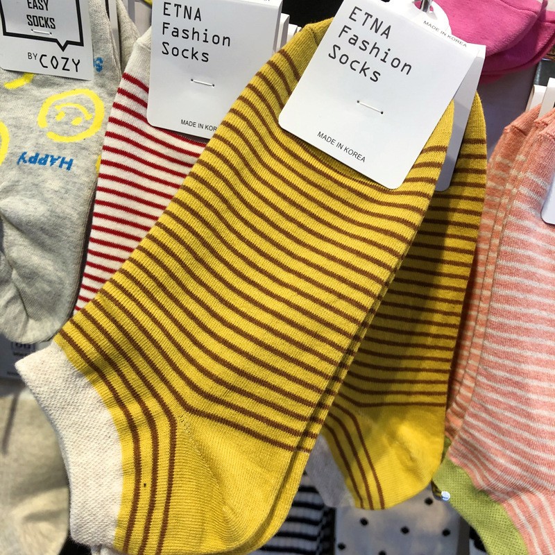 [재고] 한국 2025 봄과 여름 새로운 여성 양말 ETNA 마카롱 핀스트라이프 컬러 매칭 입 로우 허리면 양말스토어 가기