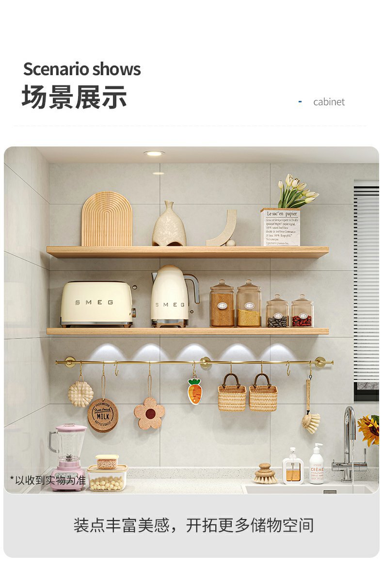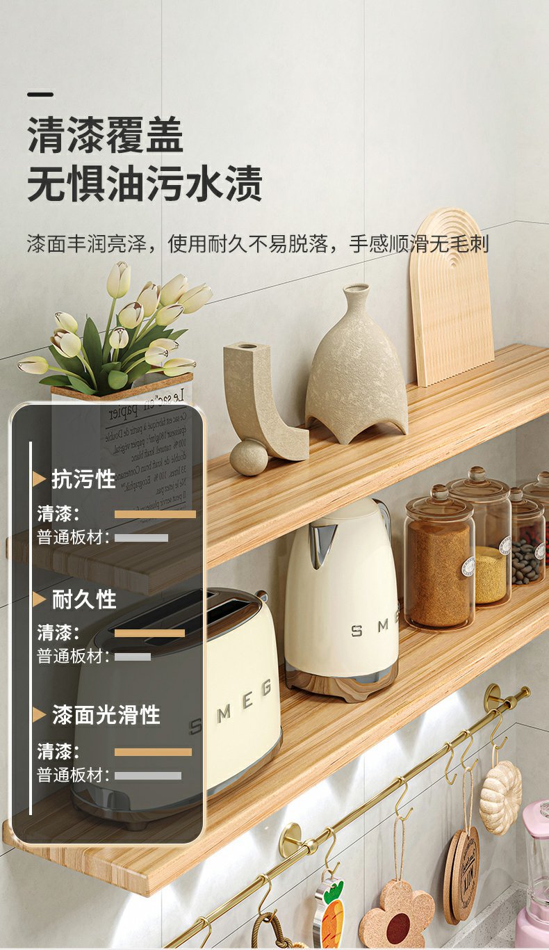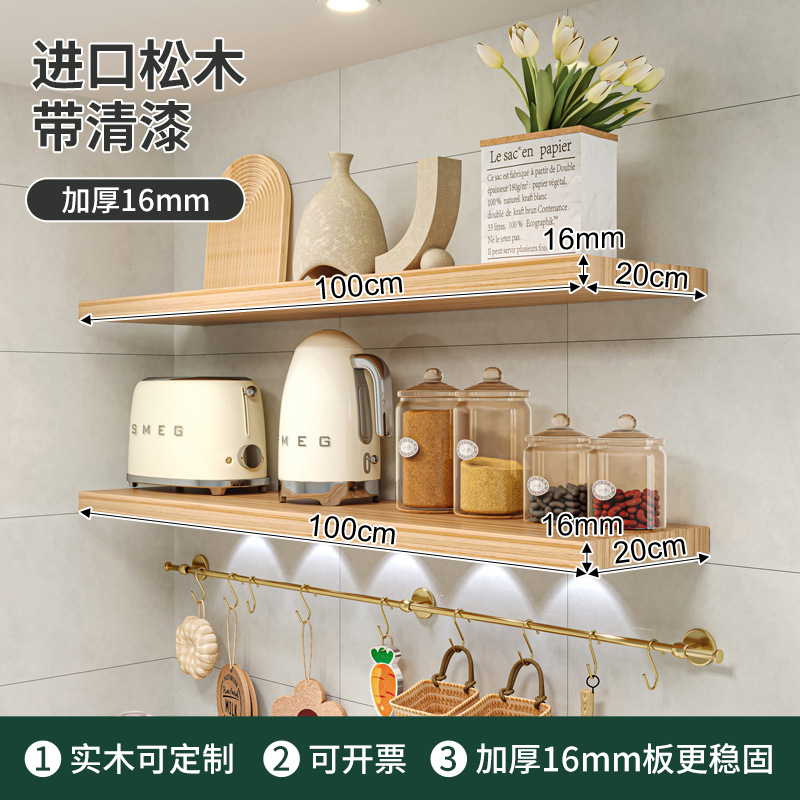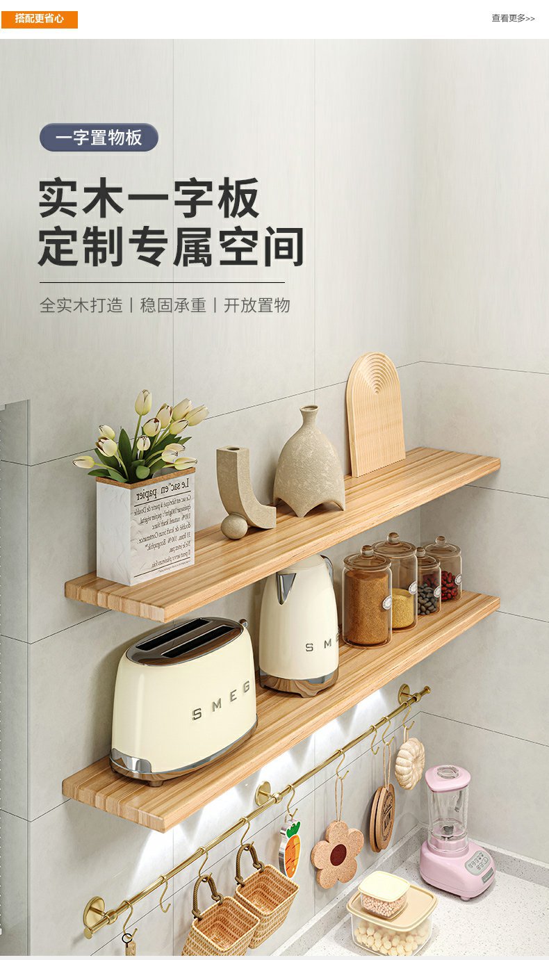 厨房墙上实木隔板一字板置物架墙壁木板搁板壁挂式墙面碗碟收纳架