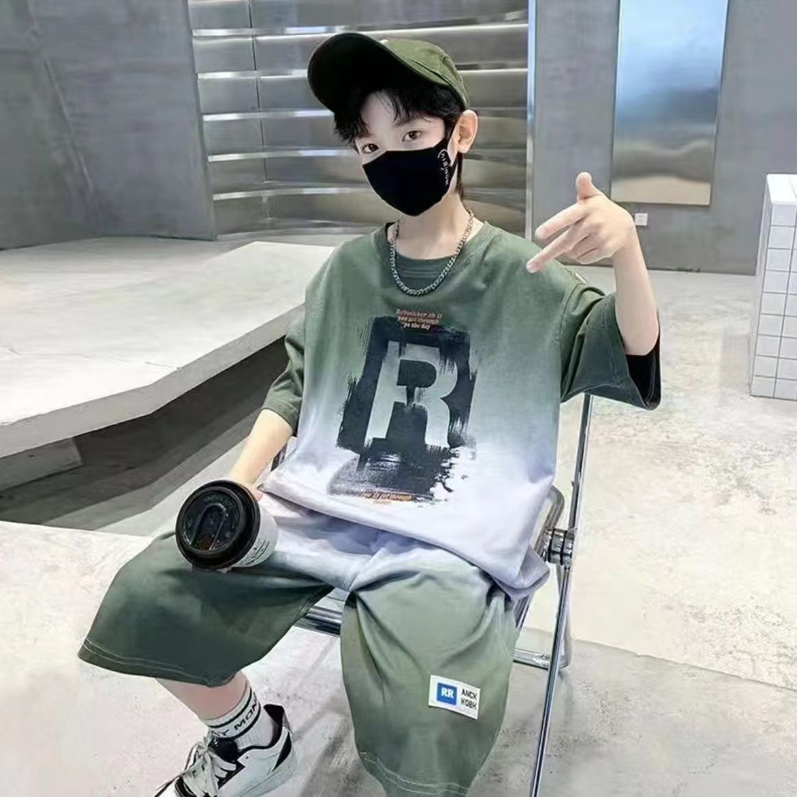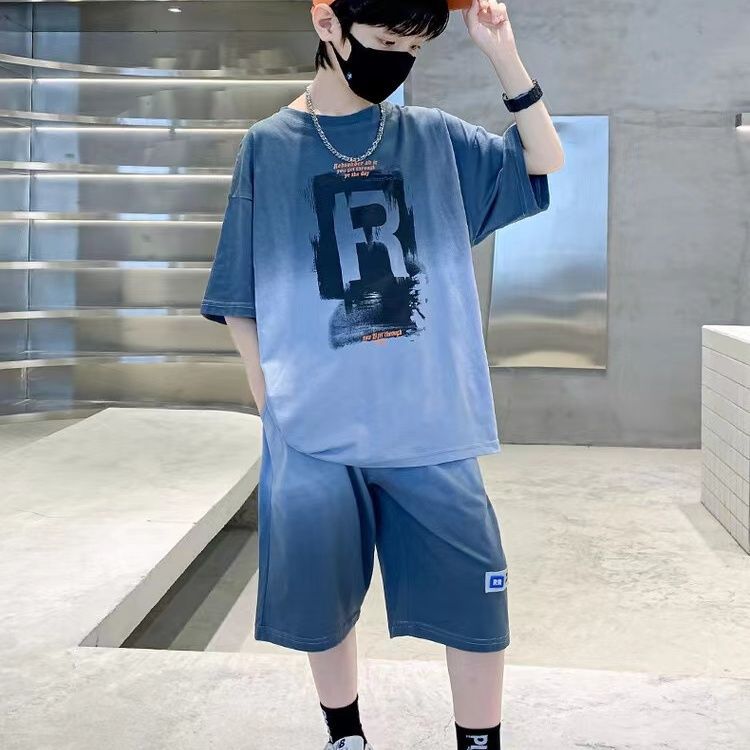 새로운 세트 스포츠 여름 반팔 알파벳 새로운 어린이 소년 중 큰 어린이 여름 농구 세트 모리 패셔너블 스타일