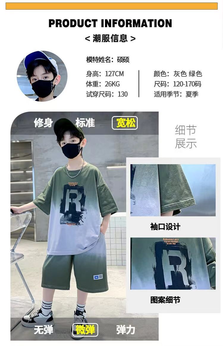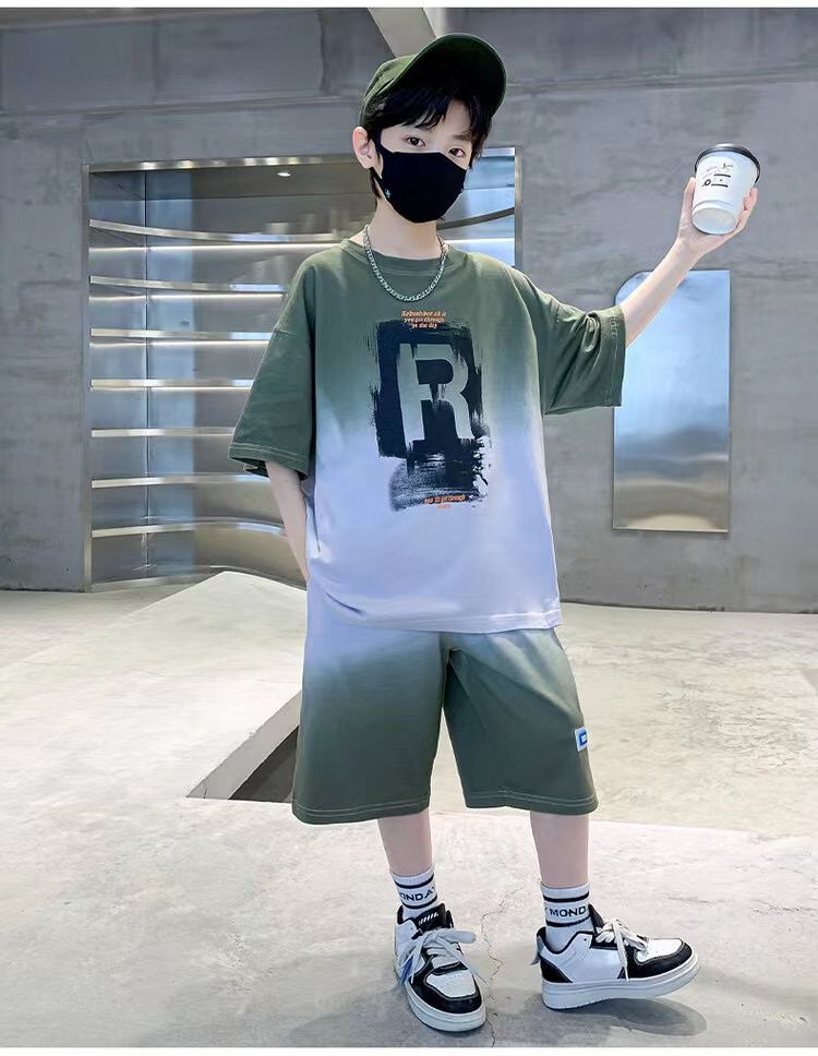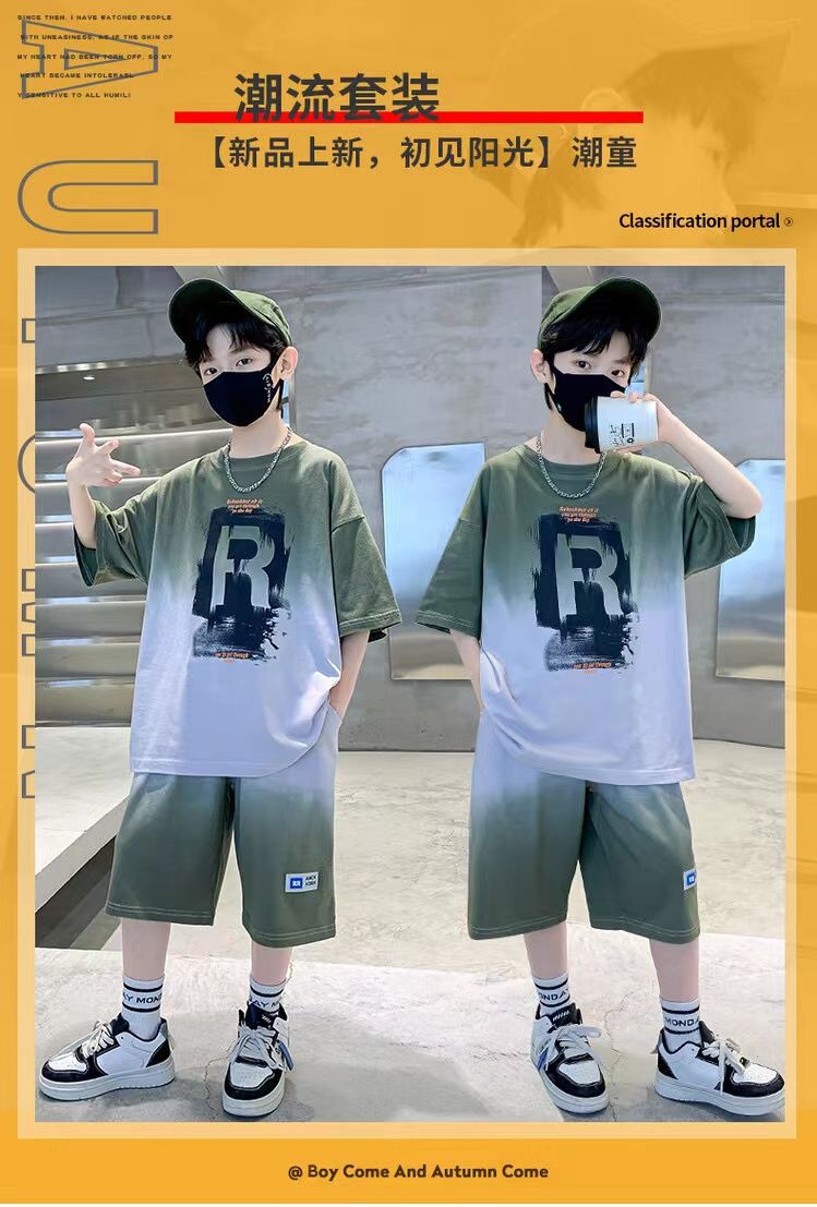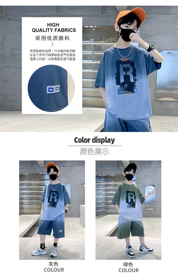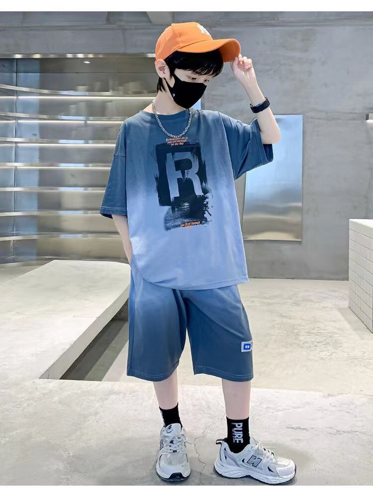 새로운 세트 스포츠 여름 반팔 알파벳 새로운 어린이 소년 중 큰 어린이 여름 농구 세트 모리 패셔너블 스타일스토어 가기
