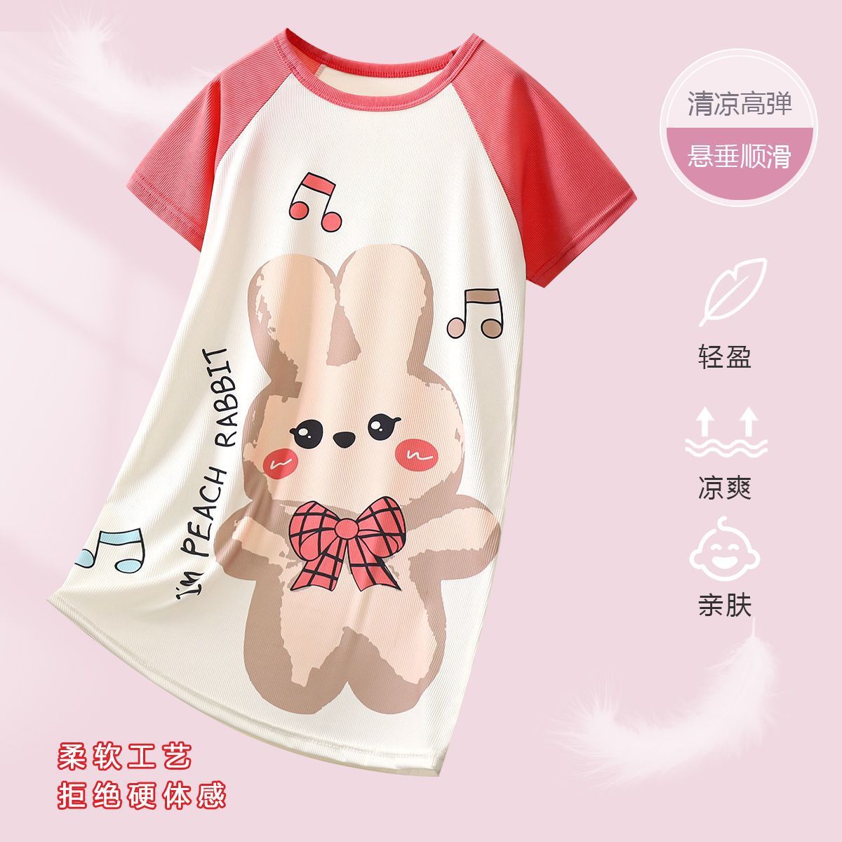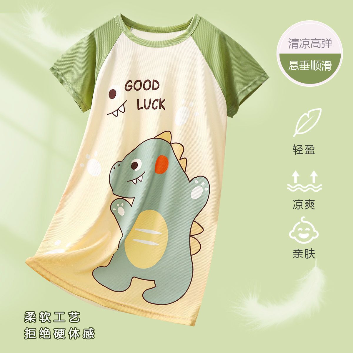 소녀 나이트가운 여름 명암 얼음 실크 큰 아이들을위한 반팔 잠옷 여름 어린 소녀 홈 옷을 위한 얇은 잠옷