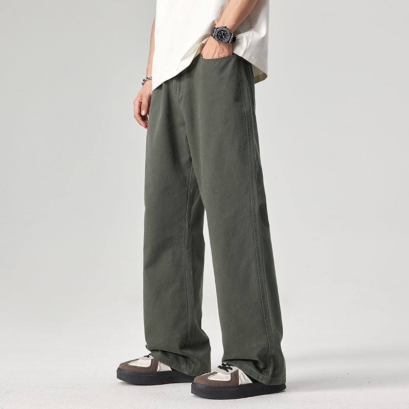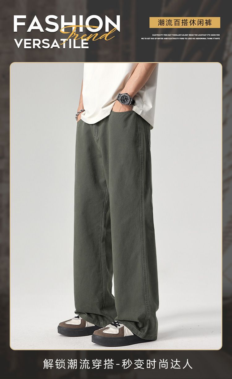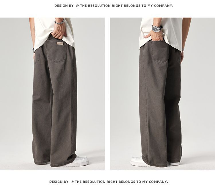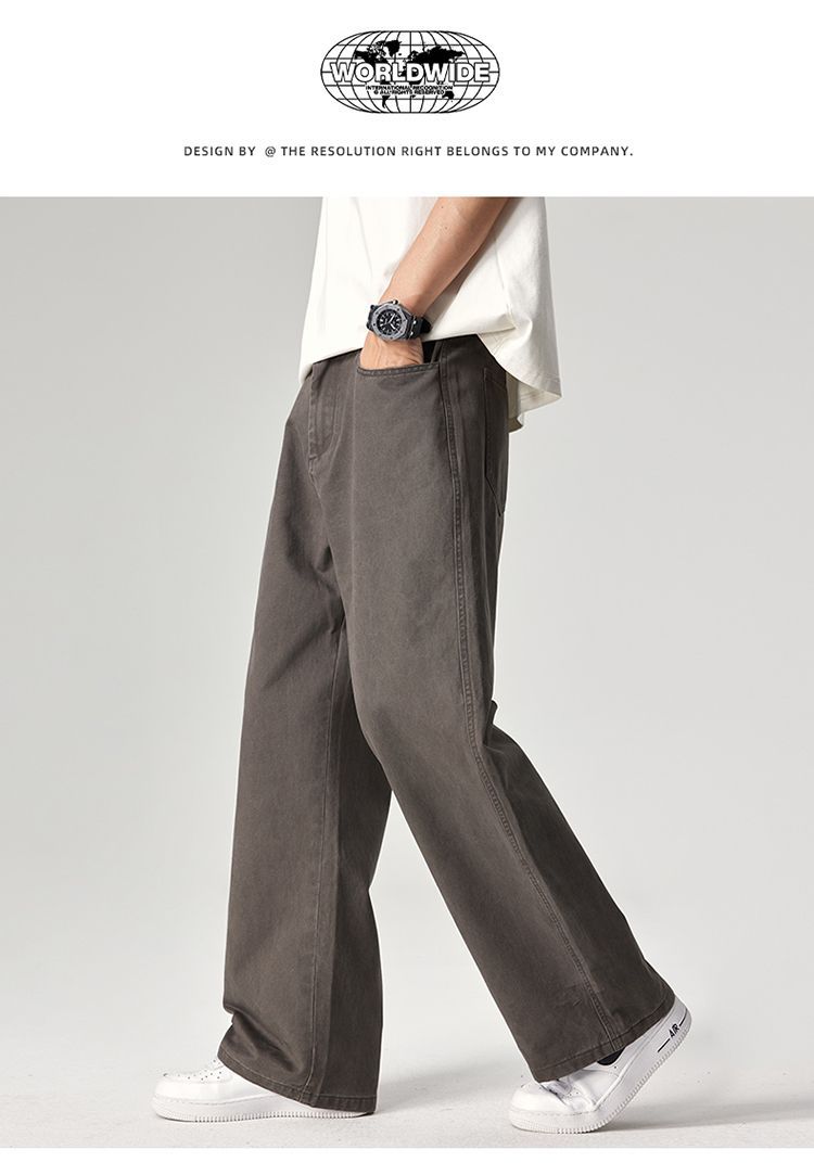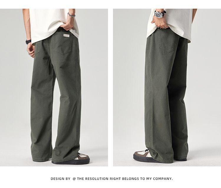 아메리칸 스타일 퓨어 코튼 오버홀 남자 트렌디 브랜드 새로운 올 매치 패셔너블 와이드 레그 팬츠 느슨한 스트레이트 캐주얼 롱 팬츠