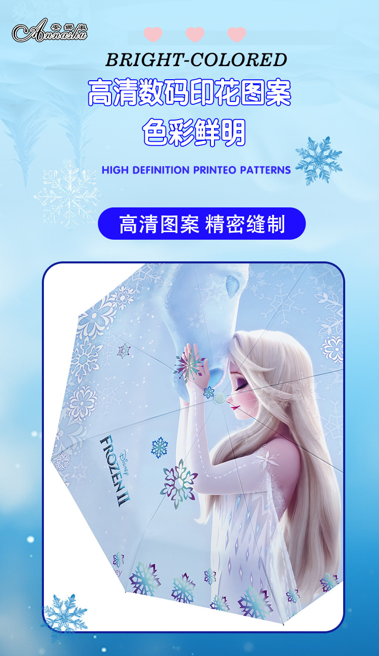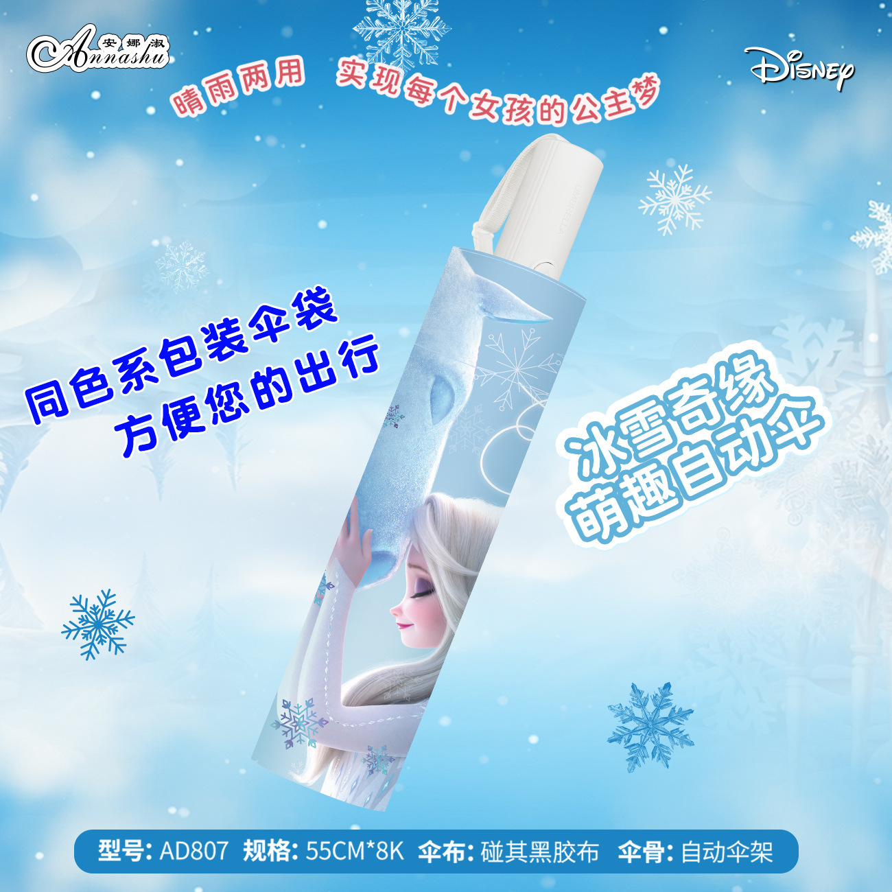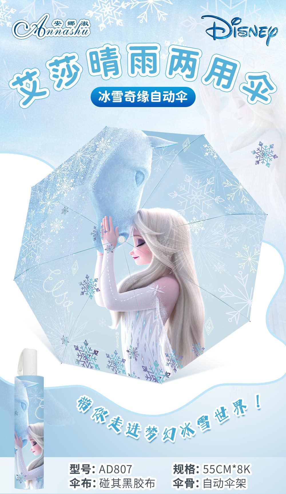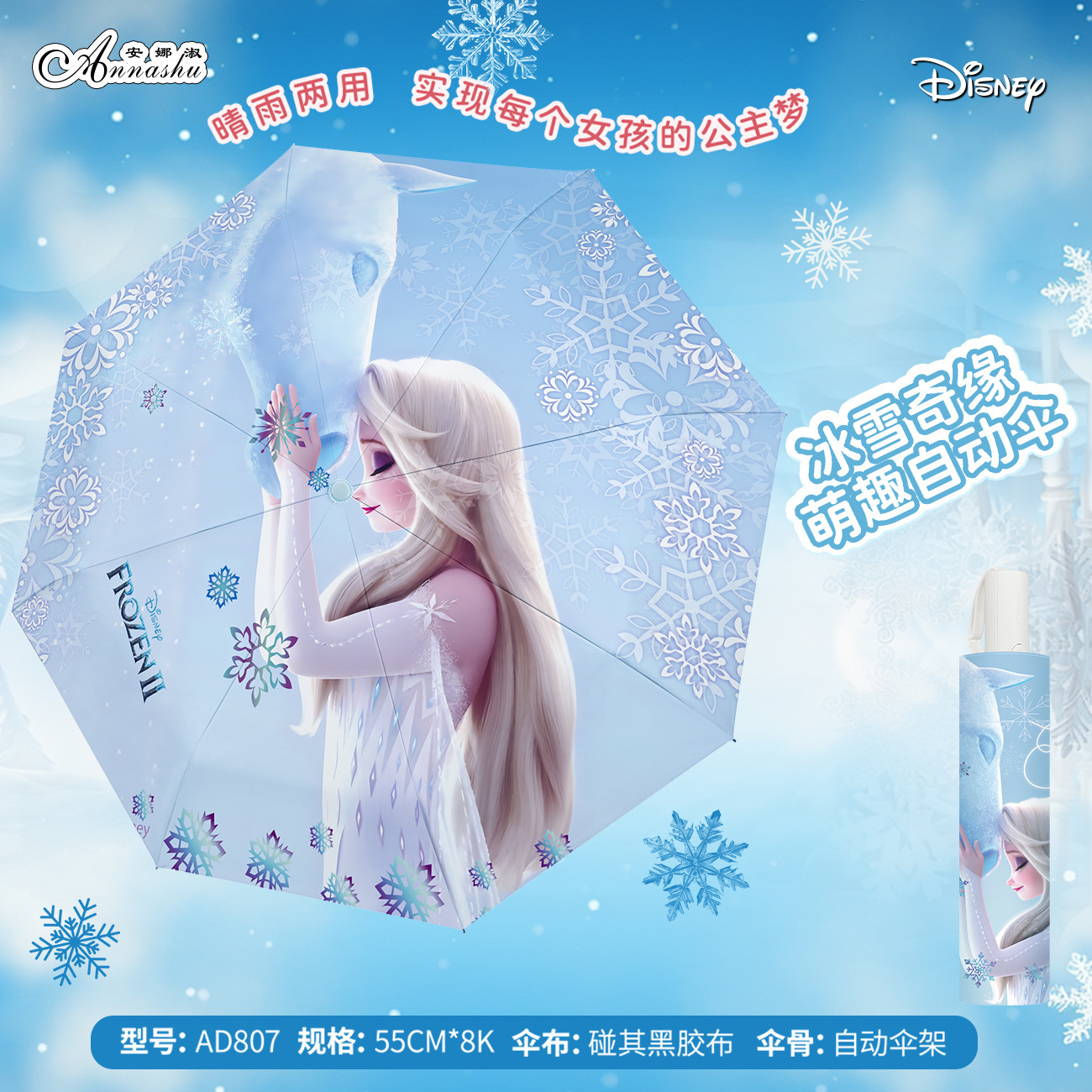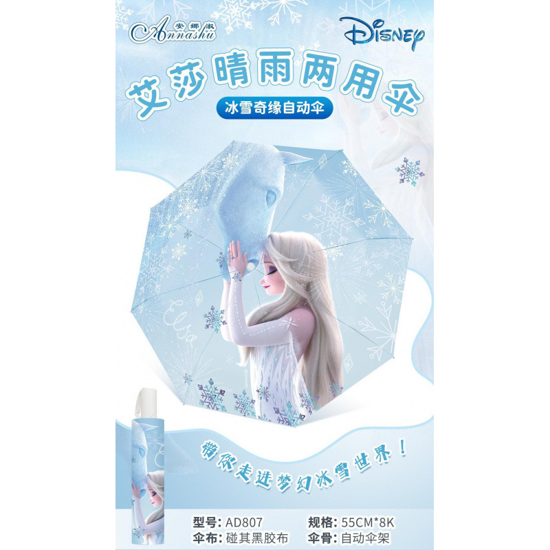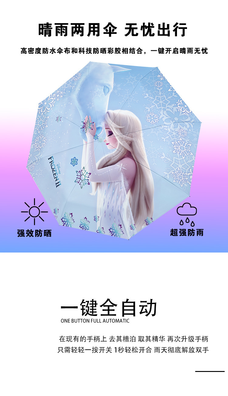 정품 공주 엘사 자동 3 배 우산 태양 우산 태양 보호 태양 그늘 UV 보호 검은 접착제 자동 맑고 비 이중 사용