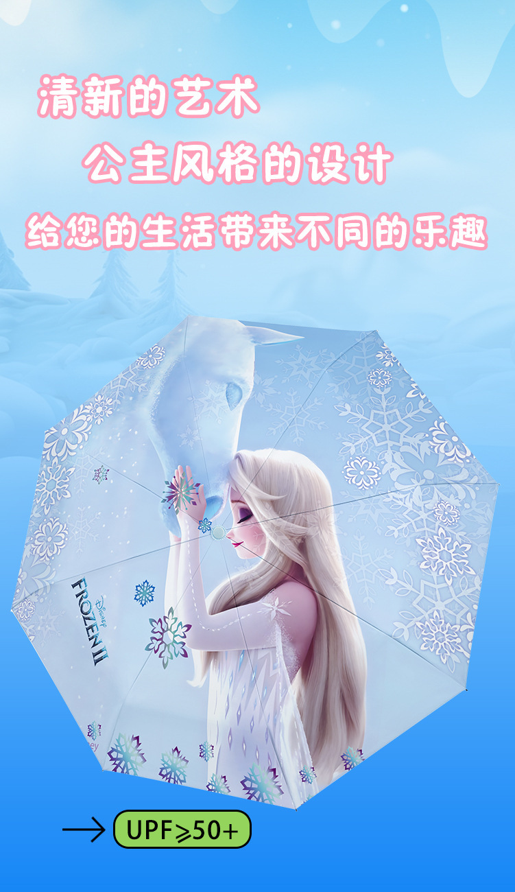 정품 공주 엘사 자동 3 배 우산 태양 우산 태양 보호 태양 그늘 UV 보호 검은 접착제 자동 맑고 비 이중 사용스토어 가기