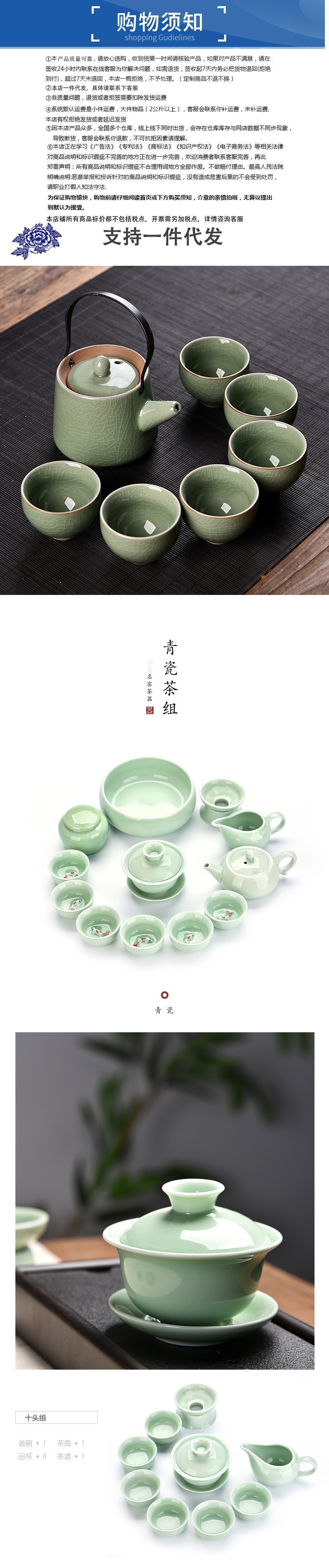 특별 가격 청자 차 세트 세라믹 세트 가정용 간단한 컵 차 트레이 완전한 쿵푸 차 세트 도매 세트스토어 가기