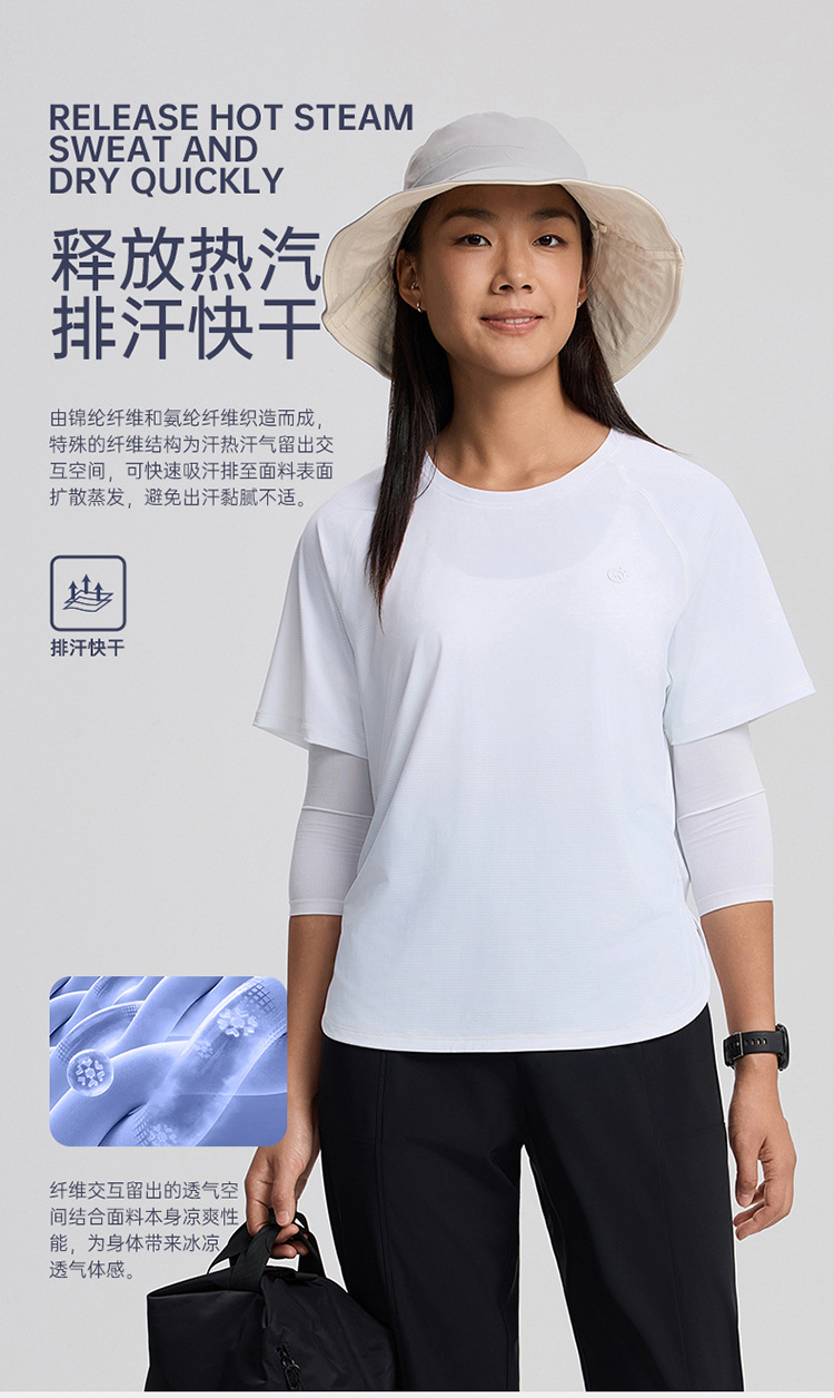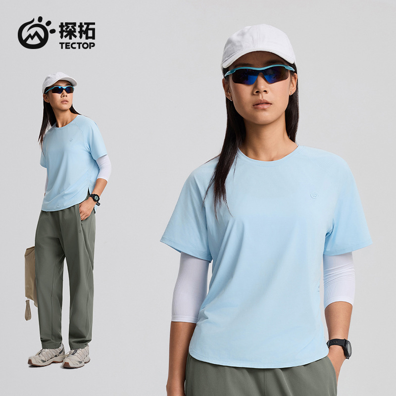 2025 봄과 여름 신제품 탄토 야외 커플의 빠른 건조 크루 넥 반팔 티셔츠 여성용 아이스 실크 반팔 퀵 드라이 의류스토어 가기