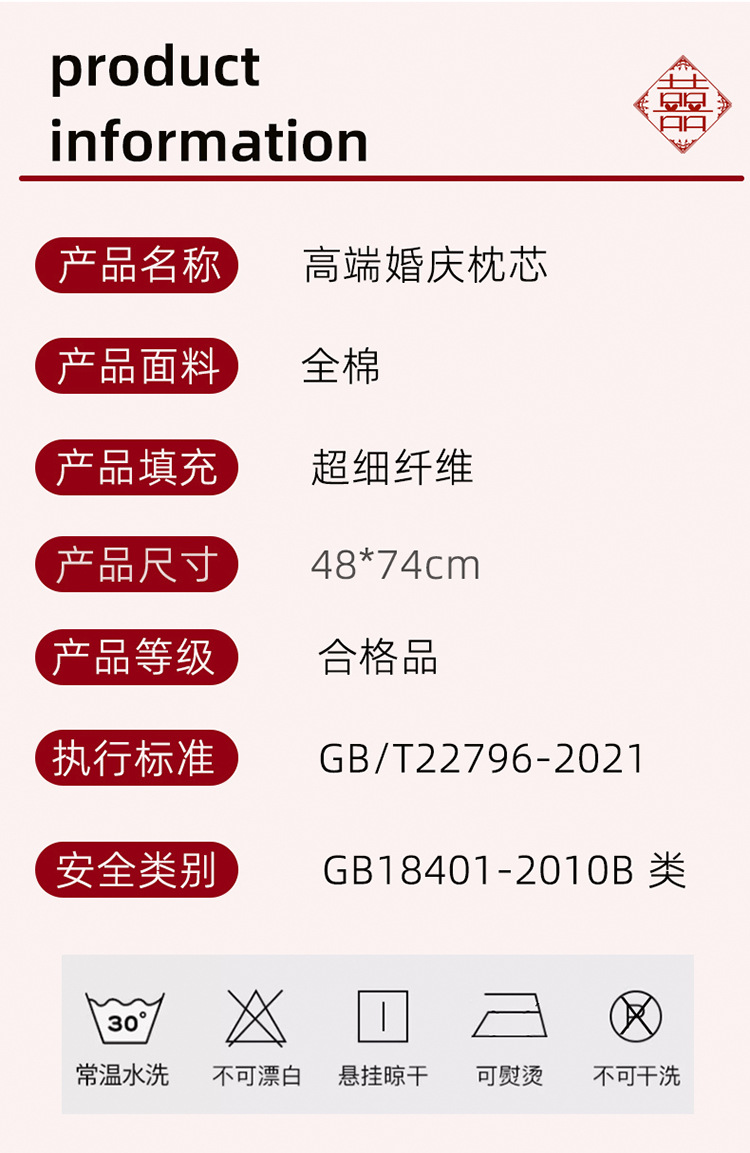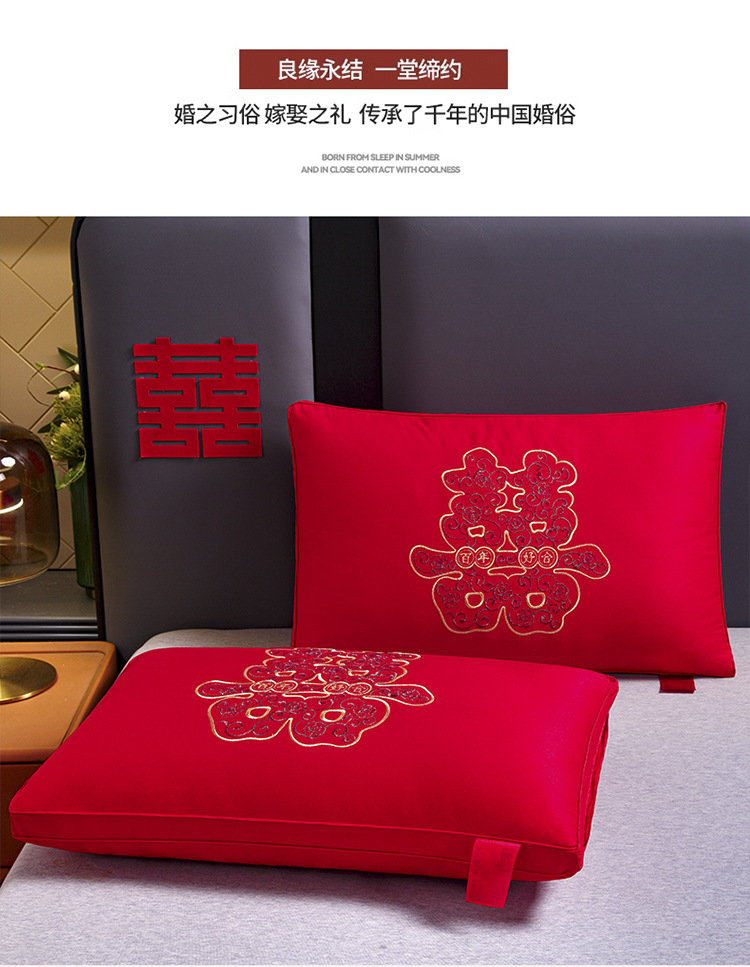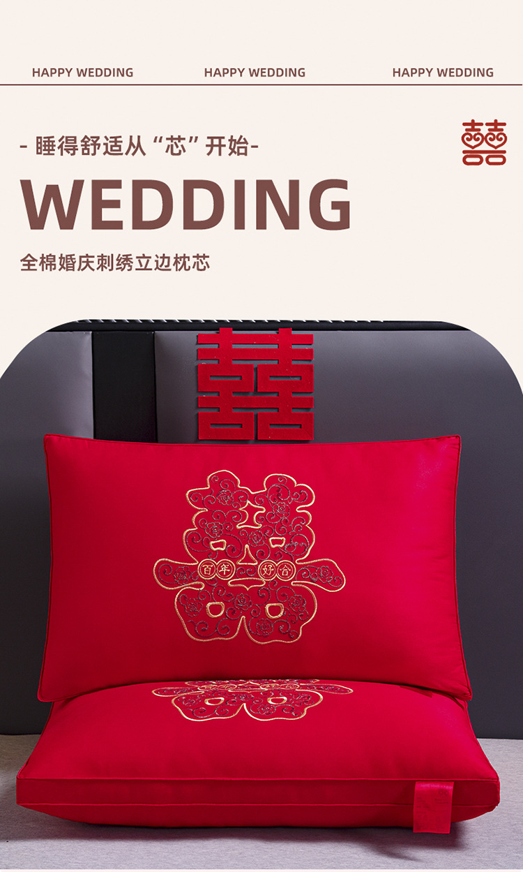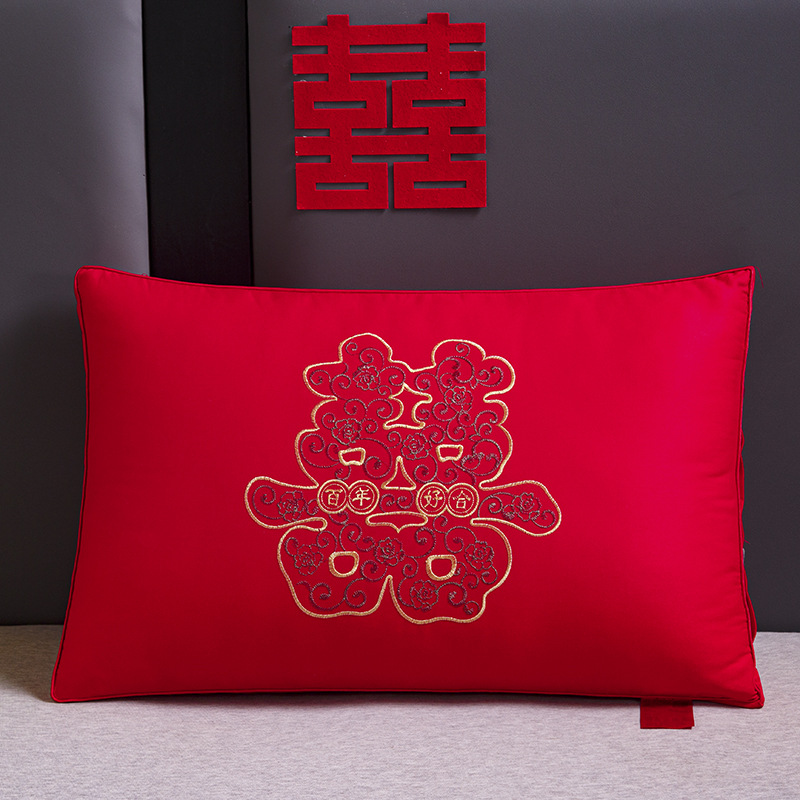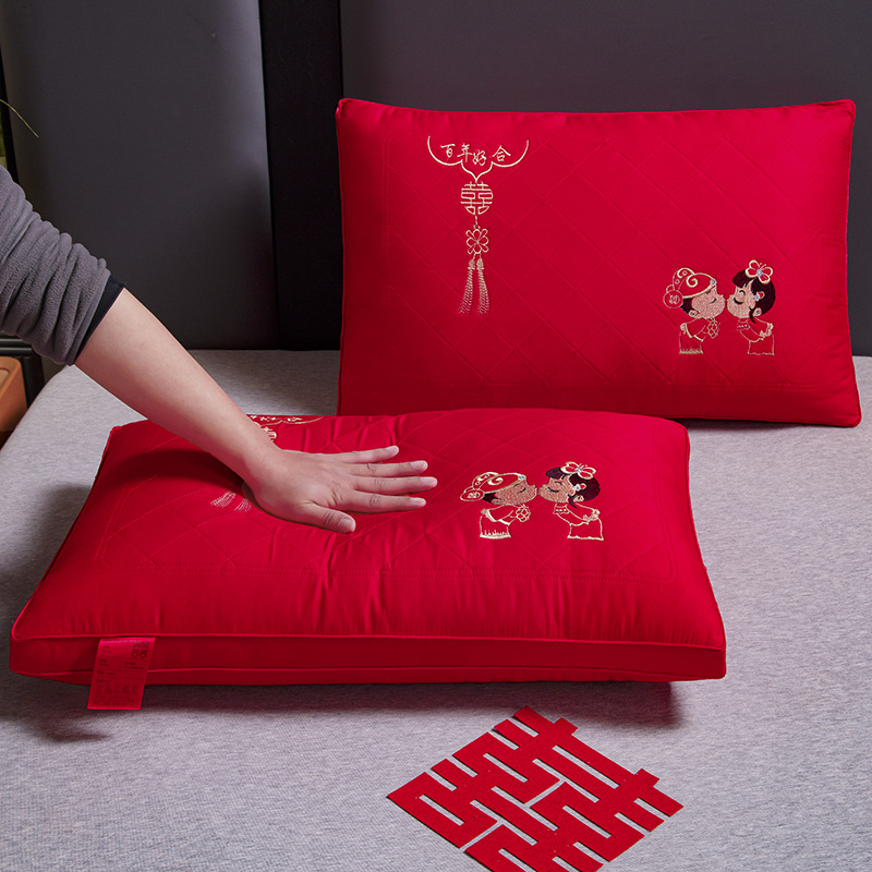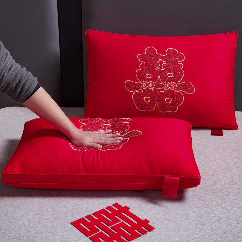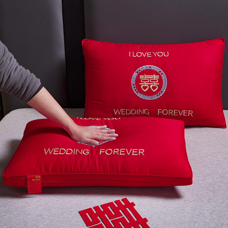 웨딩 베개 코어 빅 레드 자수 하이 엔드 웨딩 웨딩 웨딩 웨딩 룸 지참금 48x74cm 남편과 아내 베개 코어