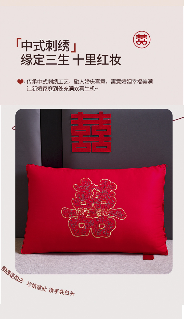 웨딩 베개 코어 빅 레드 자수 하이 엔드 웨딩 웨딩 웨딩 웨딩 룸 지참금 48x74cm 남편과 아내 베개 코어스토어 가기