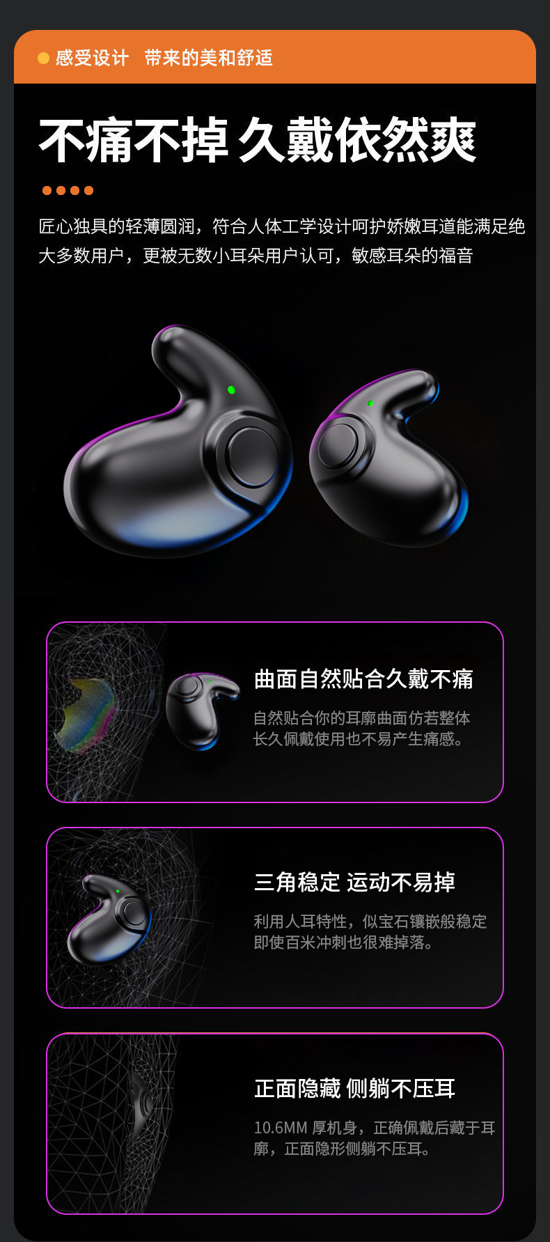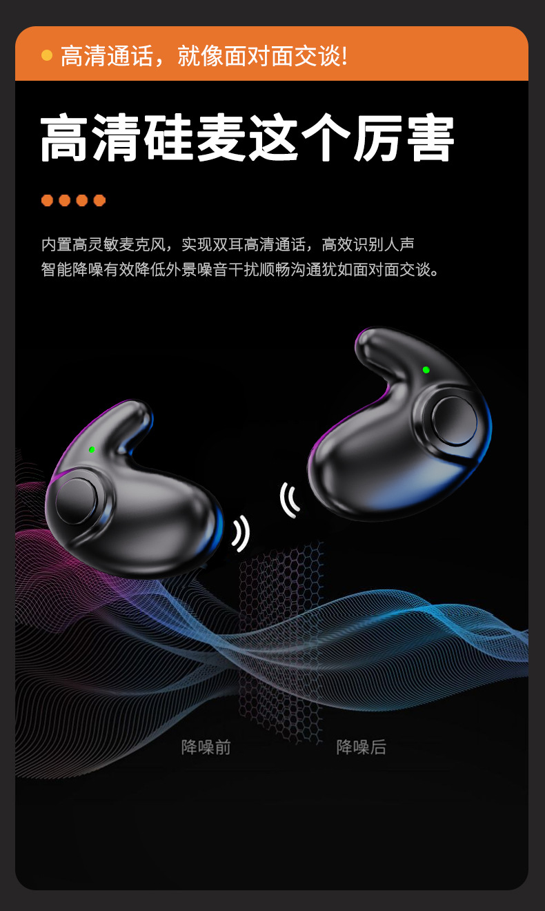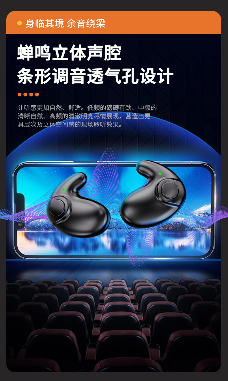 2025년형 크로스보더 자체 디자인 수면용 블루투스 이어폰, 미니 사이즈, 인이어형이 아닌 착용감이 편안한 오리지널 공장 직공급 양방향 스테레오