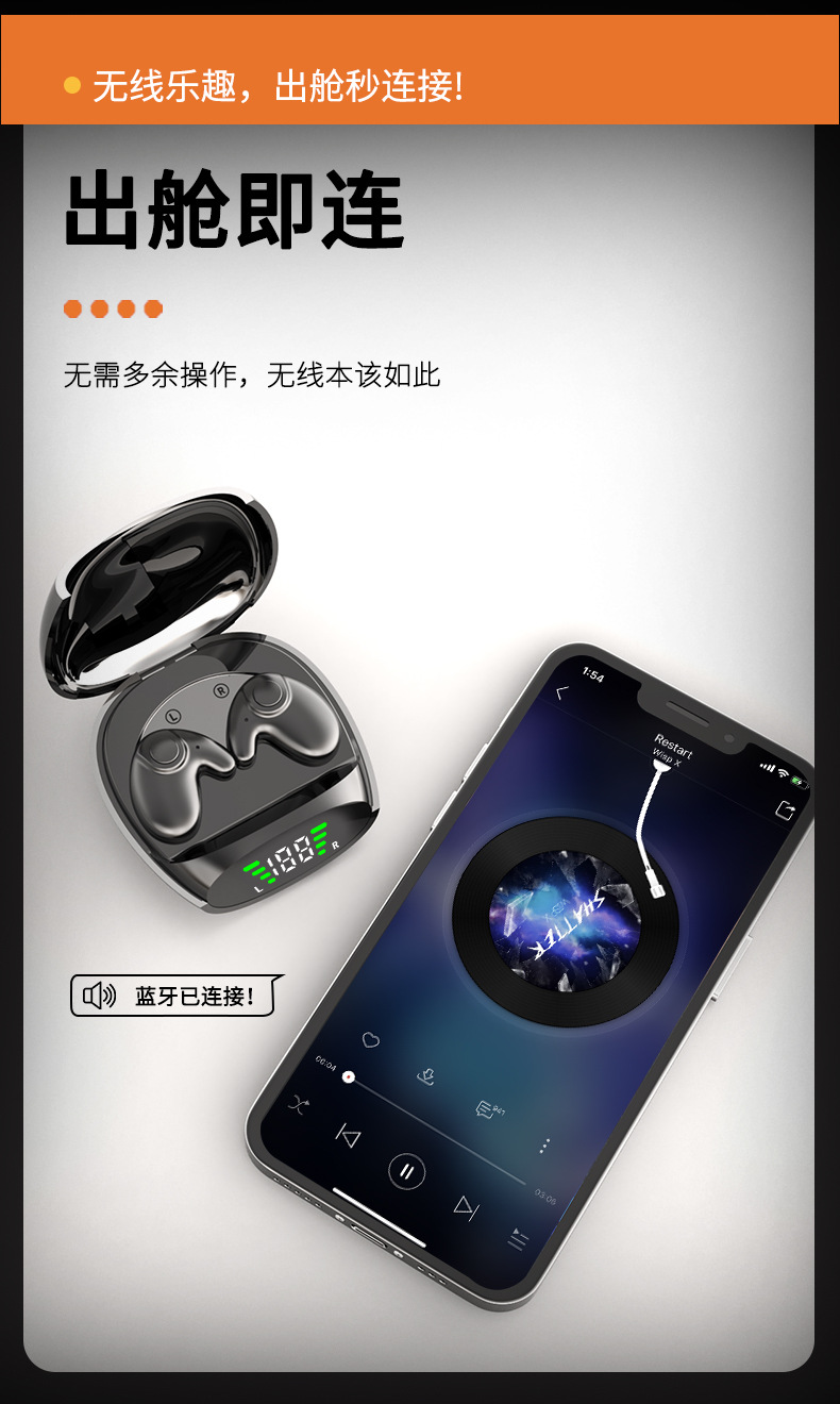 2025년형 크로스보더 자체 디자인 수면용 블루투스 이어폰, 미니 사이즈, 인이어형이 아닌 착용감이 편안한 오리지널 공장 직공급 양방향 스테레오스토어 가기