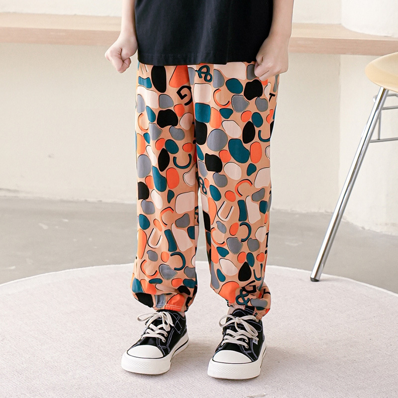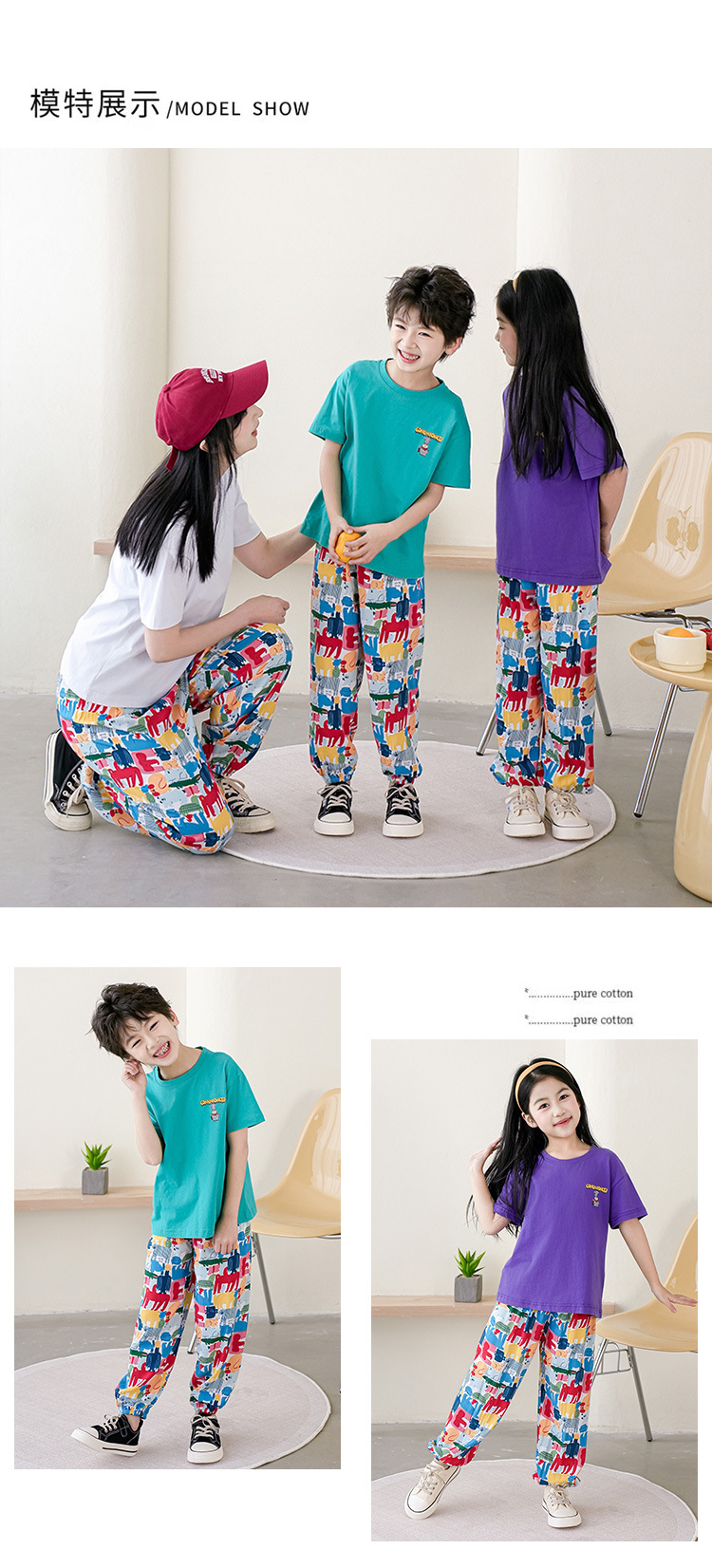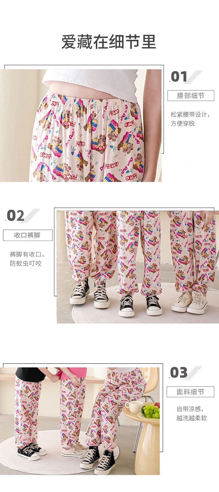 어린이 모기 방지 바지 여름면 실크 부모-자식 성인 블루머스 남녀 캐주얼 바지 한국 느슨한 어린이 바지