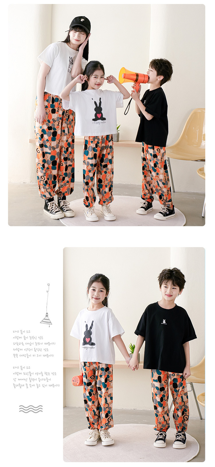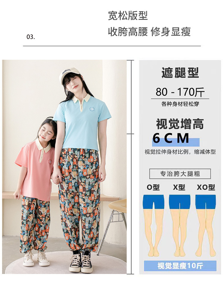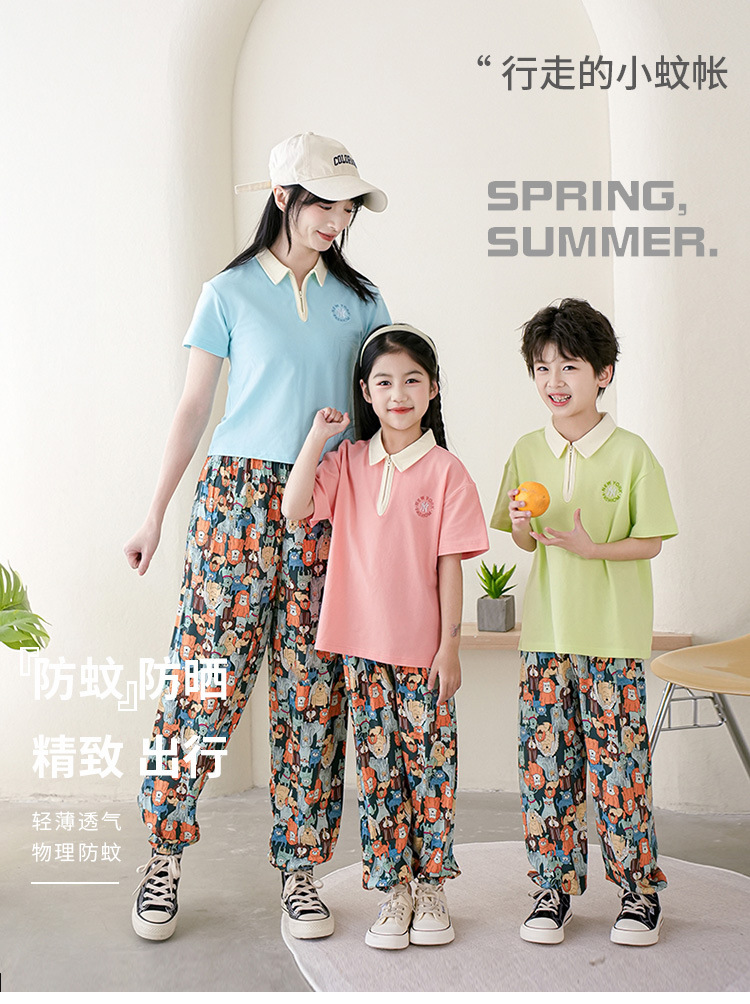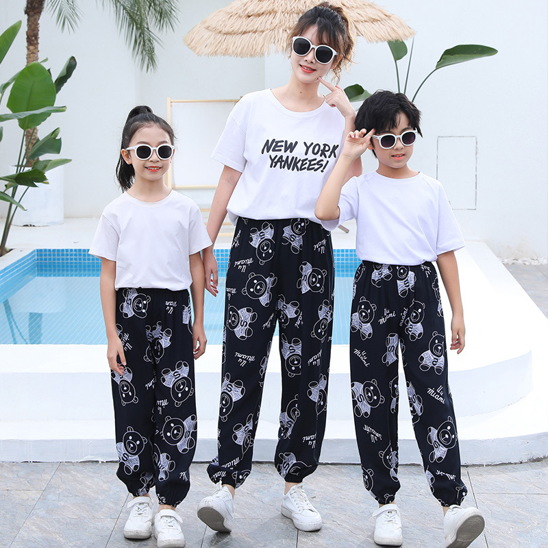 어린이 모기 방지 바지 여름면 실크 부모-자식 성인 블루머스 남녀 캐주얼 바지 한국 느슨한 어린이 바지스토어 가기