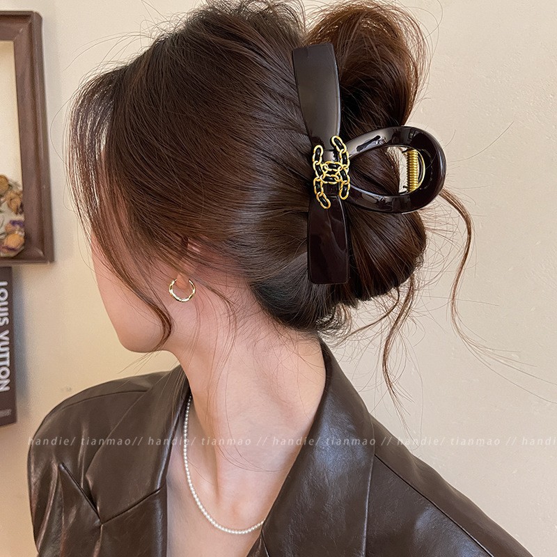 2025 새로운 차 블랙 샤넬 스타일 하이 엔드 그랩 클립 여성용 하이 엔드 센스 백 헤드 헤어핀 상어 클립 헤어 멀티 볼륨 헤어 액세서리스토어 가기
