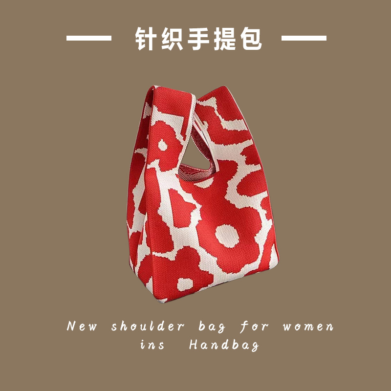한국 스타일 틈새 디자인 새로운 스타일 작은 꽃 니트 가방 부모-아이 핸드백 보름 가방 어깨 패션 토트 백 트렌디스토어 가기