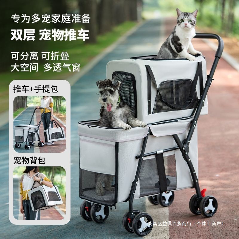 개 및 고양이 카트 야외 라이트 상부 및 하부 애완 동물 카트 도매 더블 애완 동물 카트 분리스토어 가기