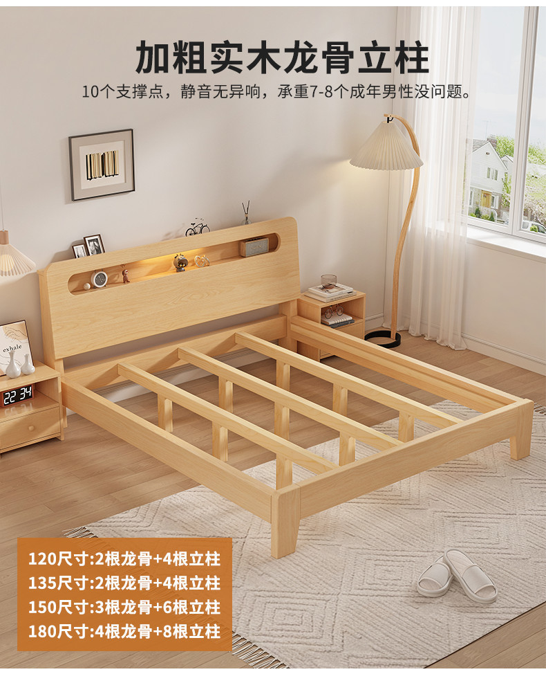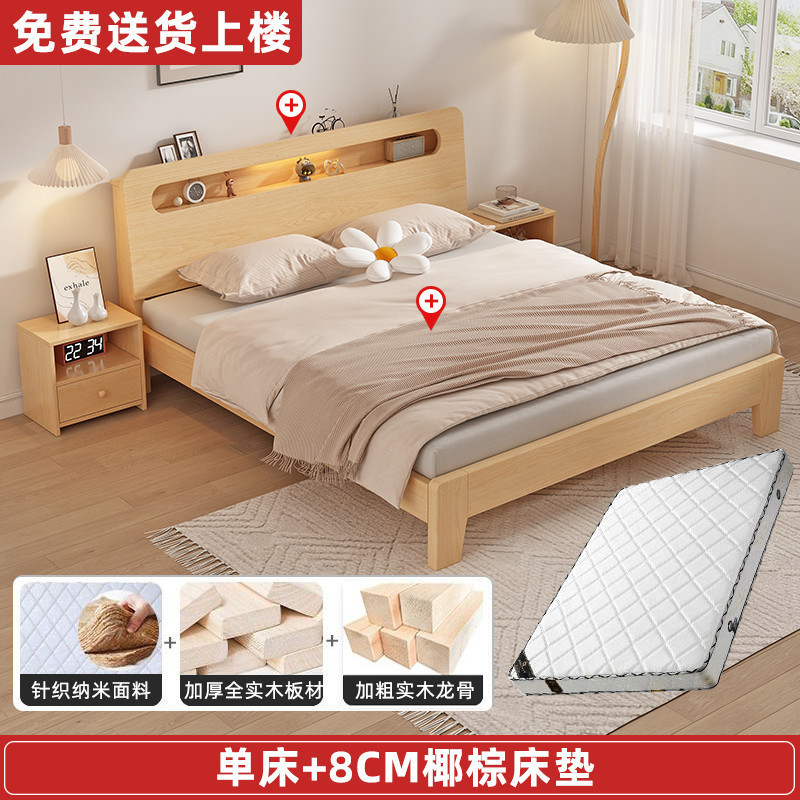 단단한 나무 침대 1.5 m 더블 침대 가구 1.8 m 현대 간단한 임대 주택 경제적인 1.2m 싱글 침대 프레임스토어 가기