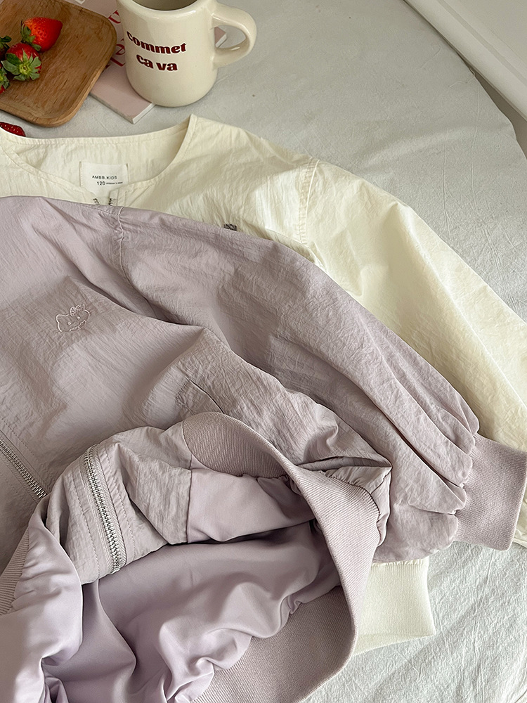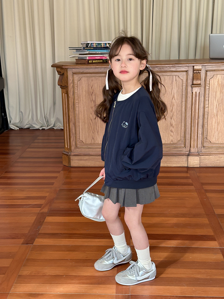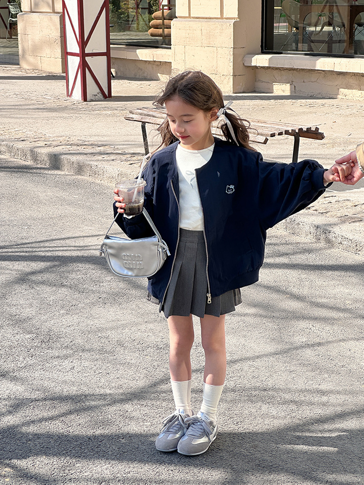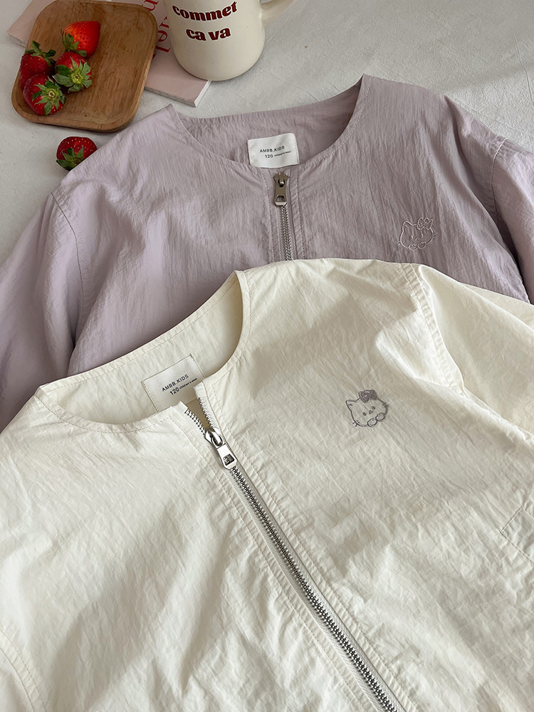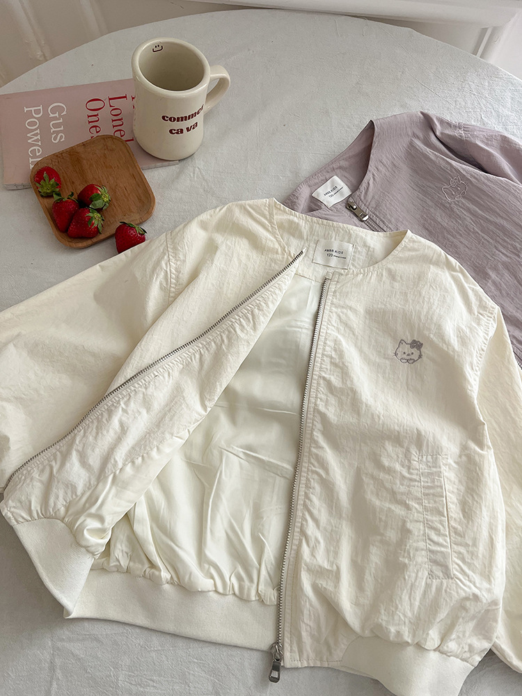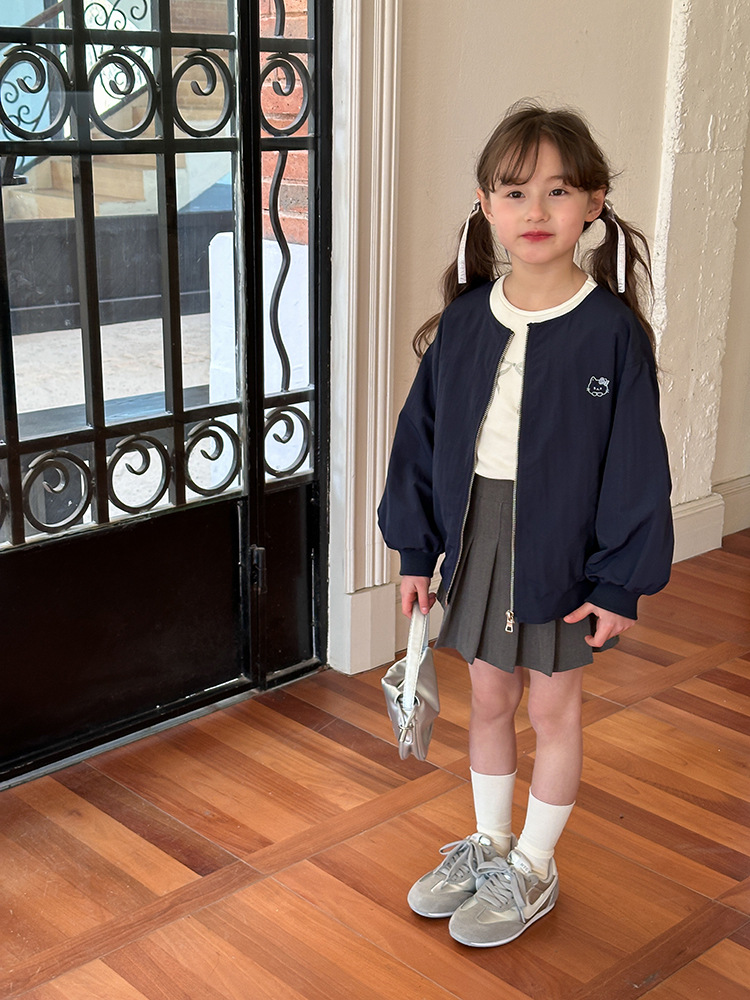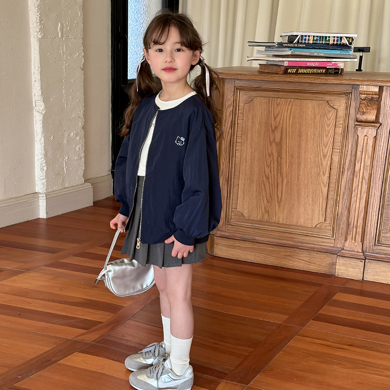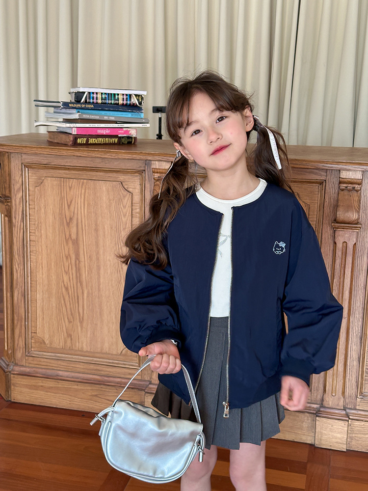 Emo Beibei 어린이 재킷 지퍼 셔츠 최고 봄 소녀 달콤한 귀여운 자수 새끼 고양이 세트 코트스토어 가기