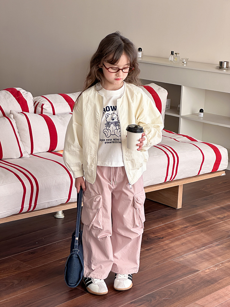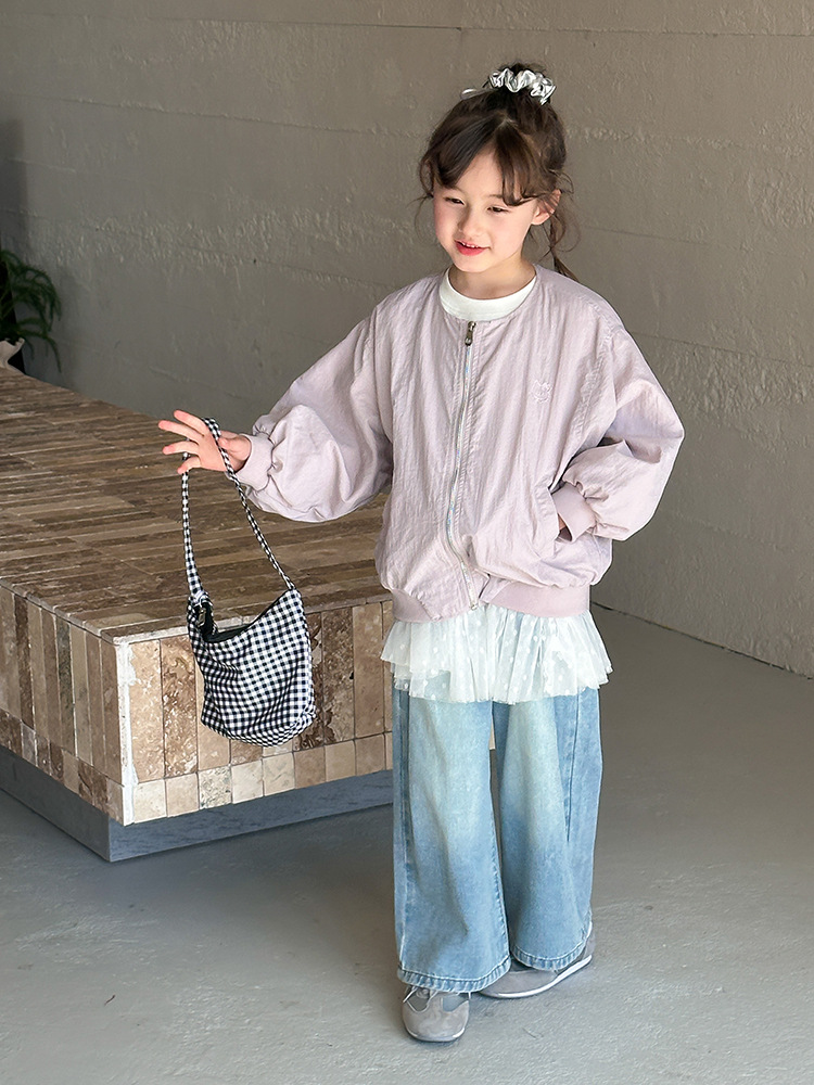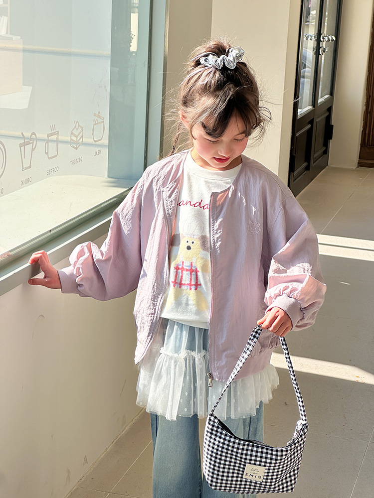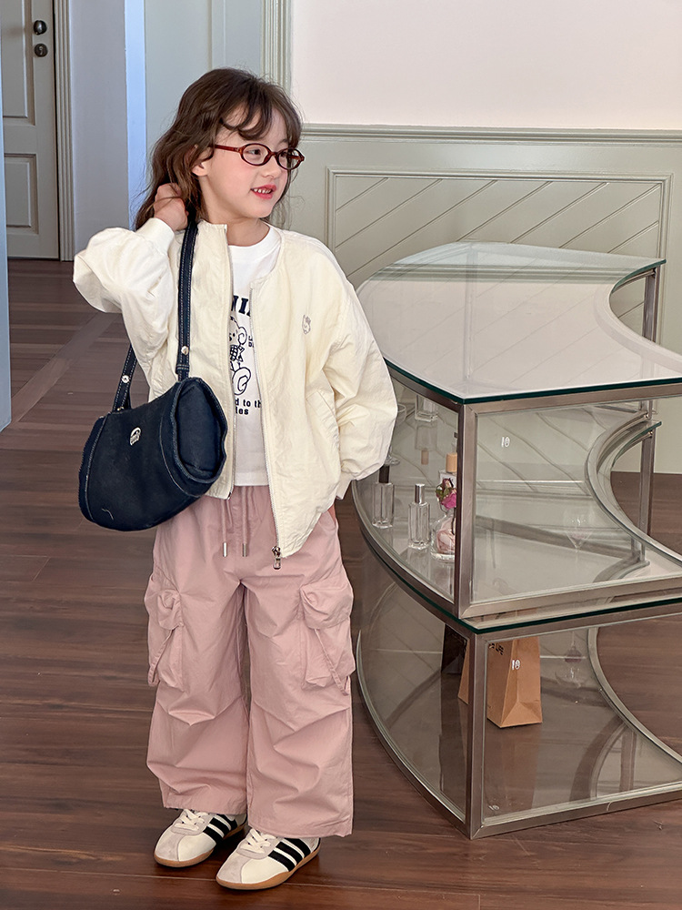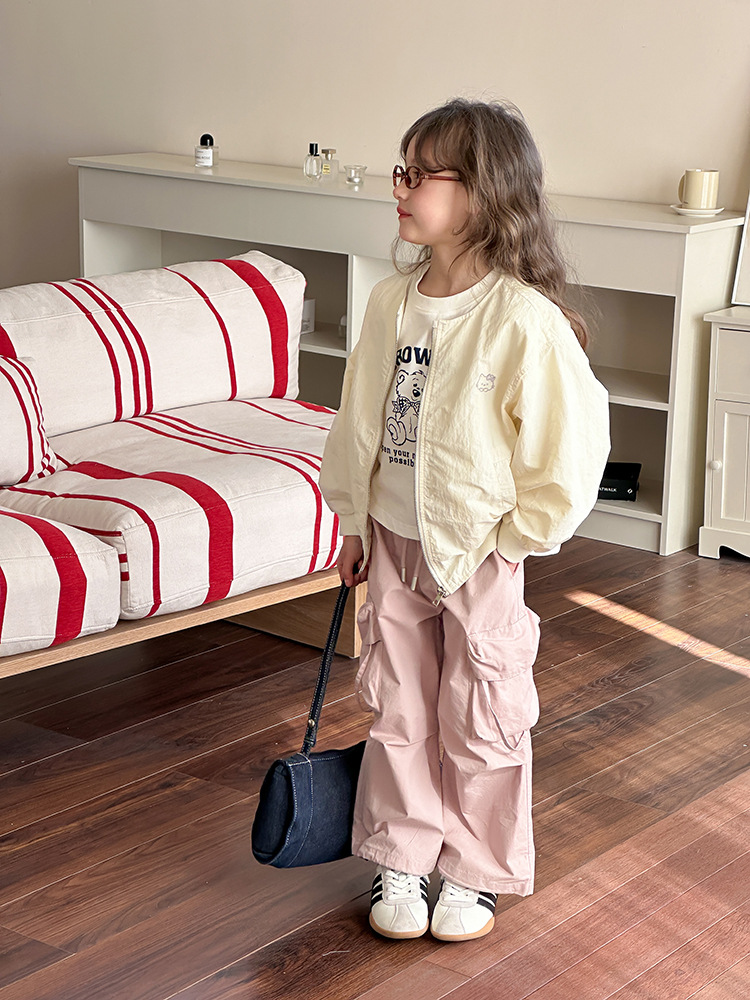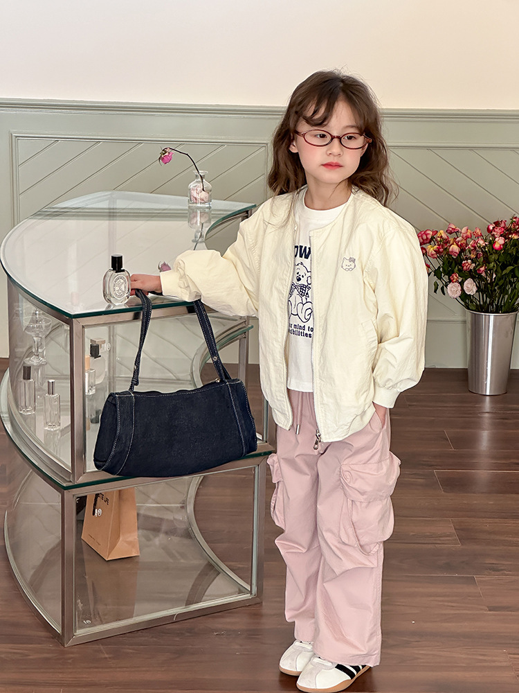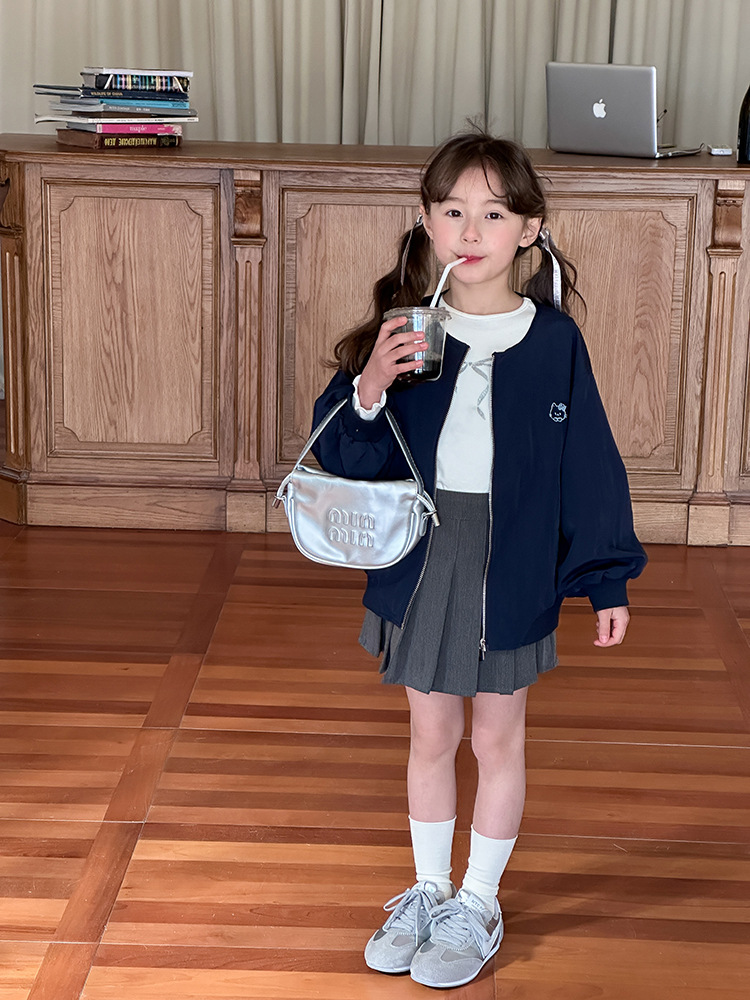Emo Beibei 어린이 재킷 지퍼 셔츠 최고 봄 소녀 달콤한 귀여운 자수 새끼 고양이 세트 코트스토어 가기