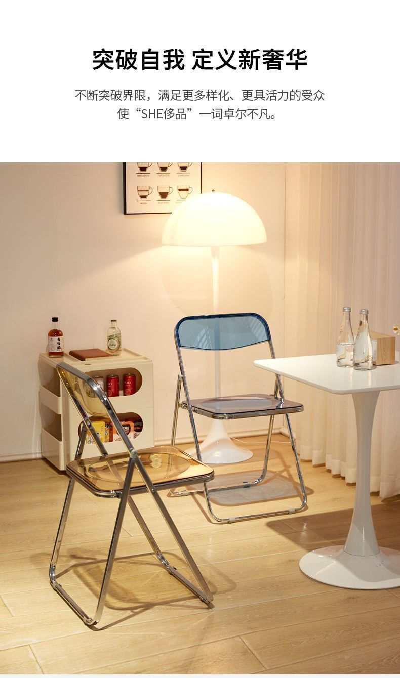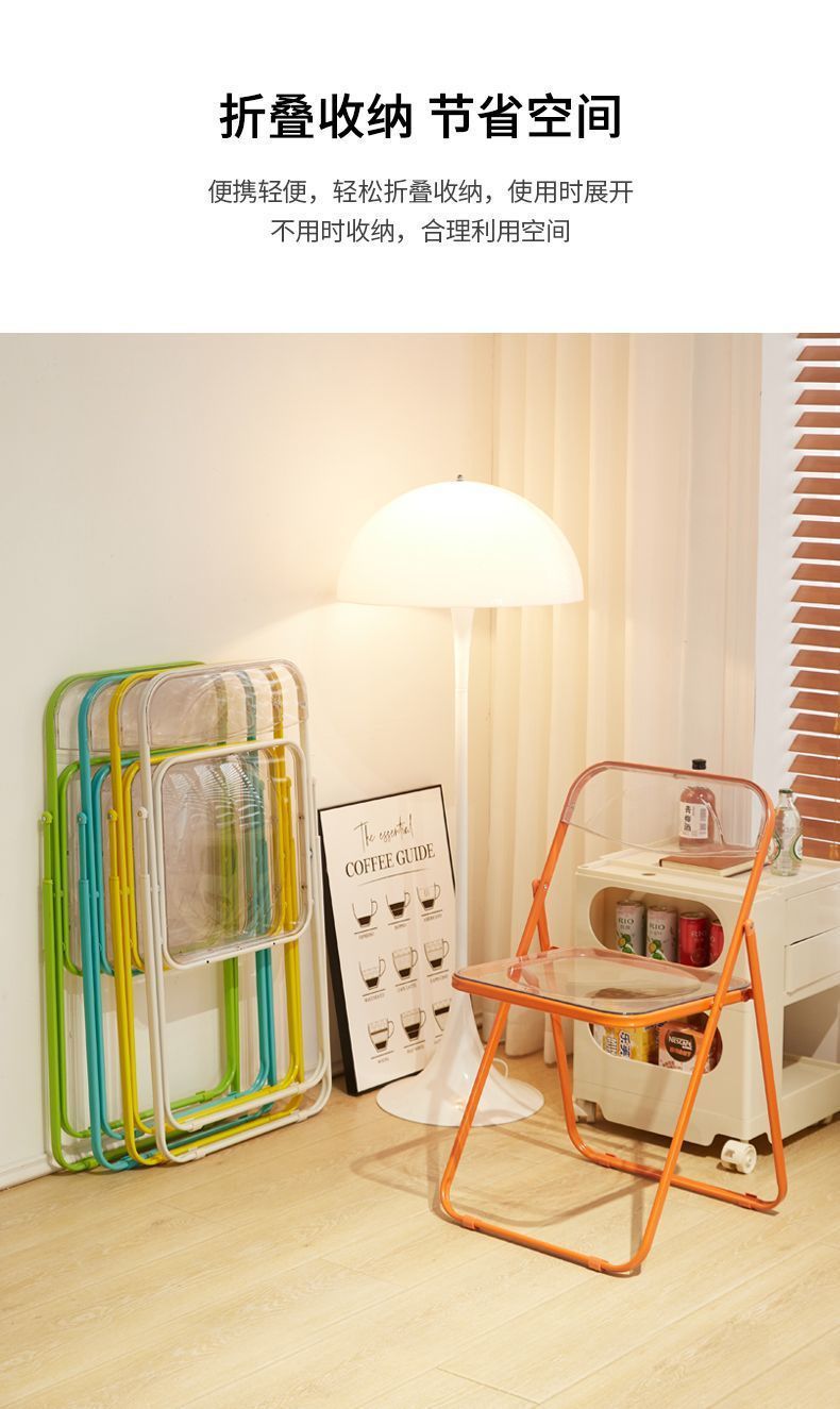 투명 아크릴 의자 등받이 접이식 의자 의류 매장 사진 사이버 연예인 Ins 스타일 의자 가정용 간단한 식당스토어 가기