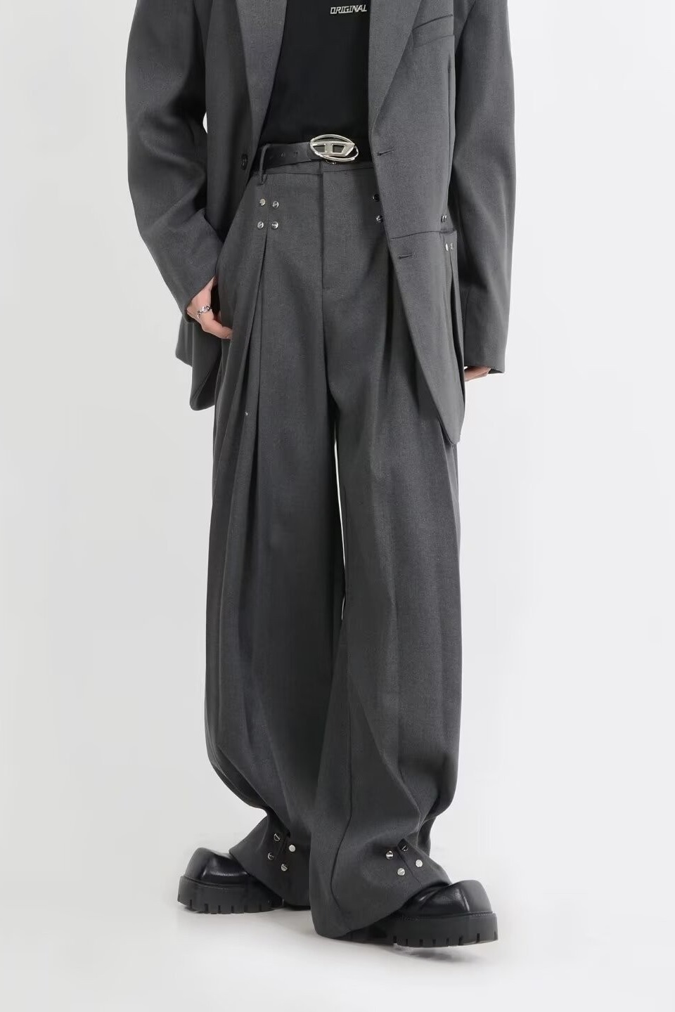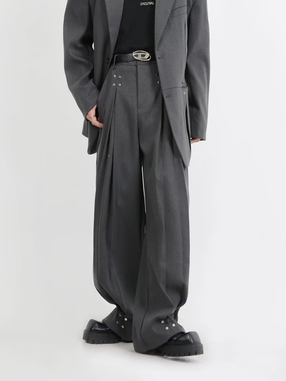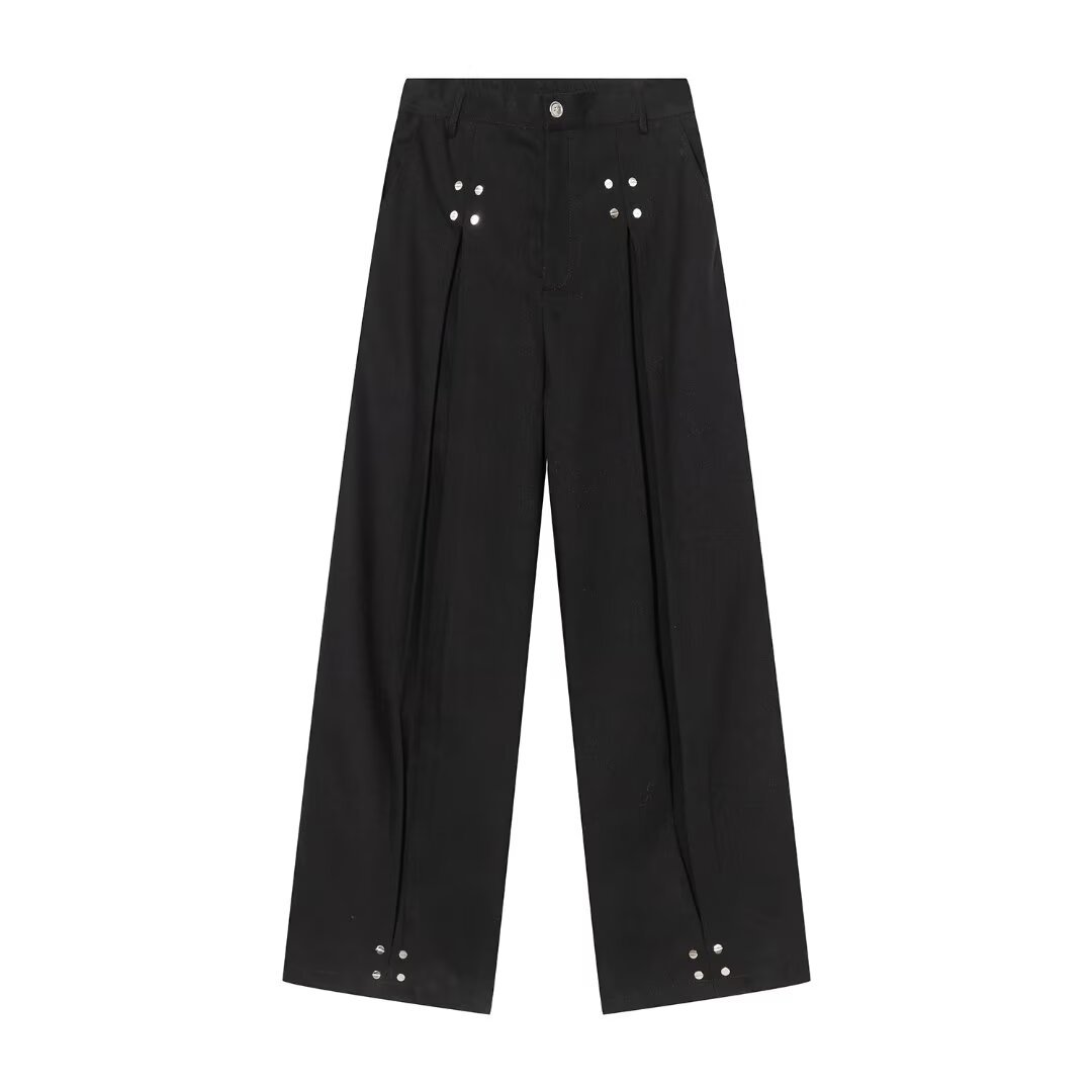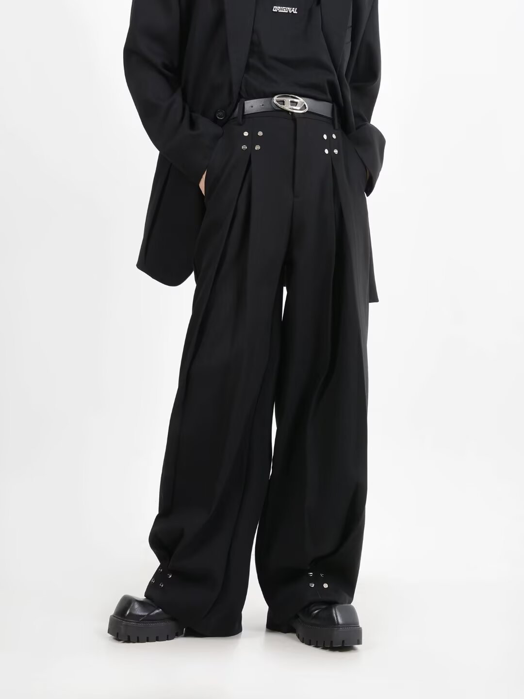 나폴리 디자인 센스 바지 남성용 봄 미국 분위기 리벳 플리츠 와이드 레그 팬츠 패션 브랜드 스트레이트 바지