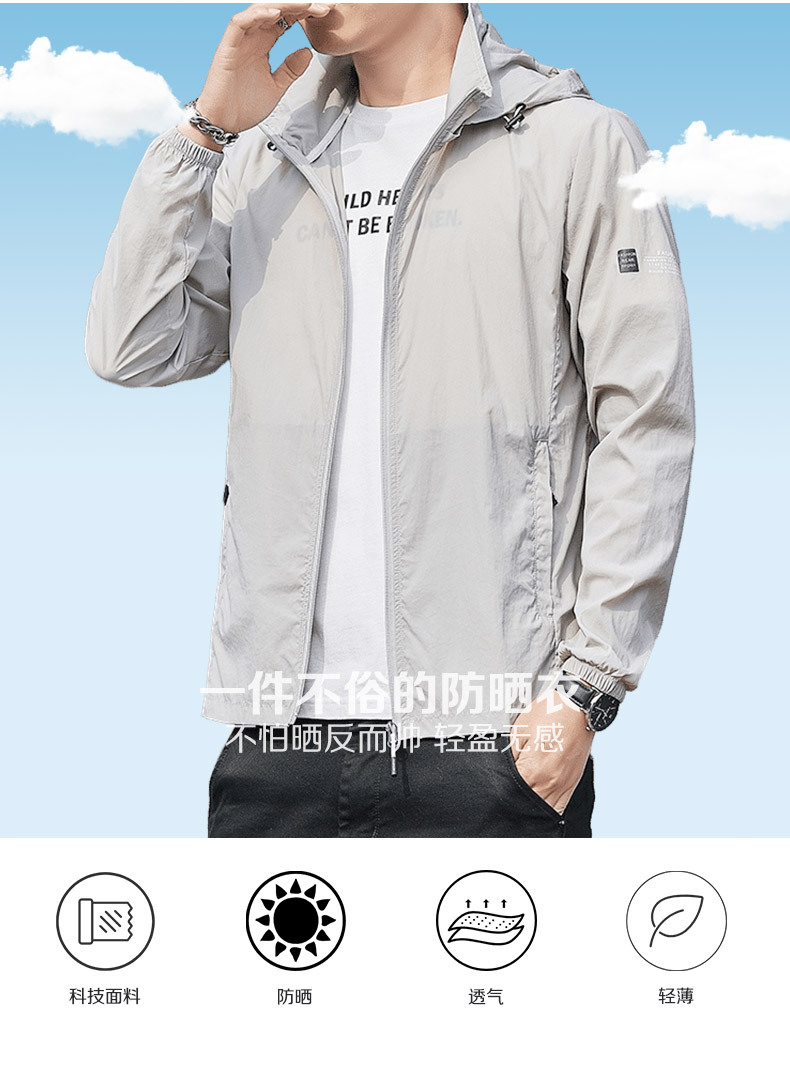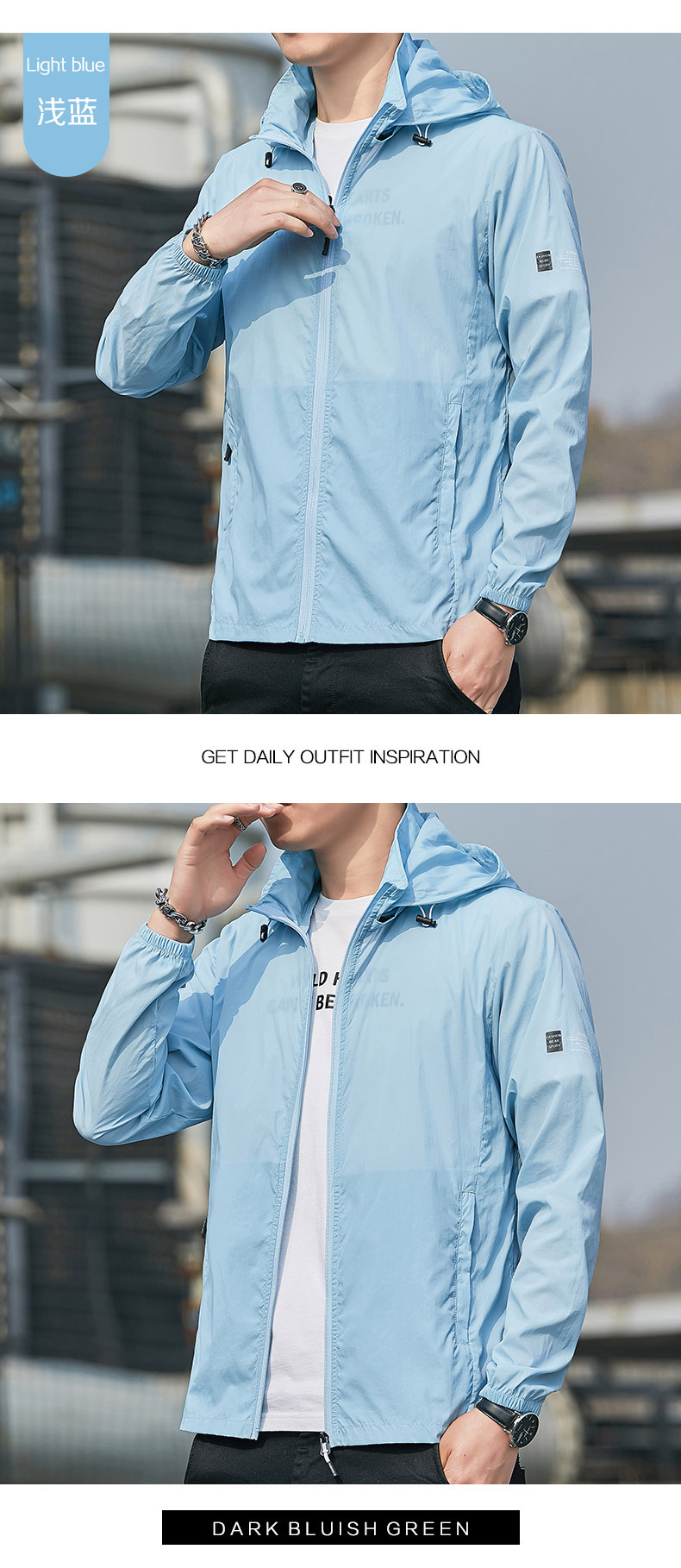 국경 간 이동식 모자 얇은 코트 남자 여름 아이스 실크 선 스크린 패션 브랜드 통기성 야외 낚시 자켓