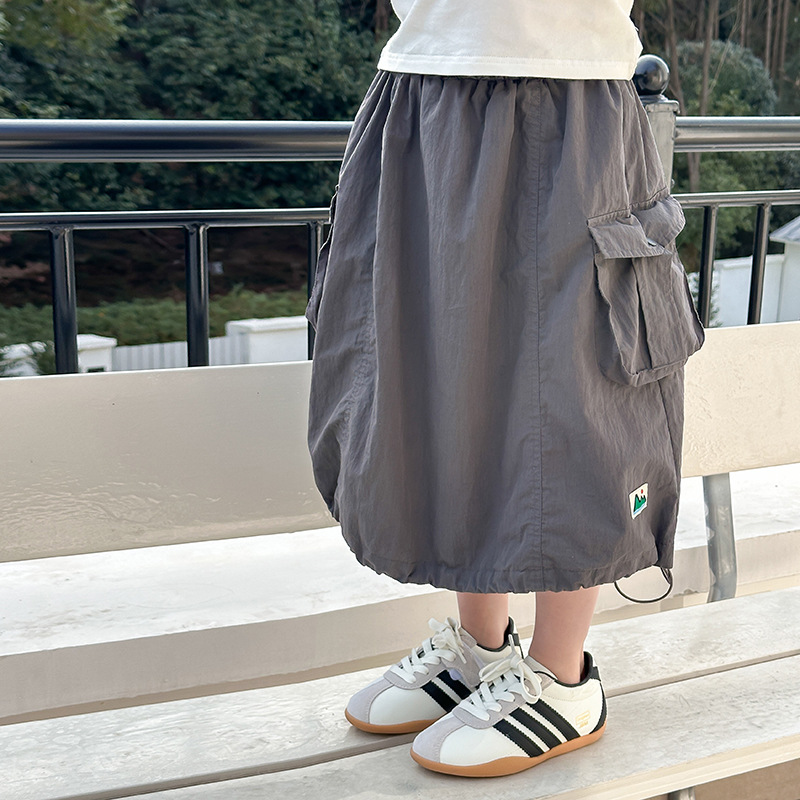 엘모 베이 베이 소녀 한국 스타일 라벨링 포켓 작업복 스커트 2025 봄 새로운 어린이 캐주얼 중간 길이 스커트스토어 가기