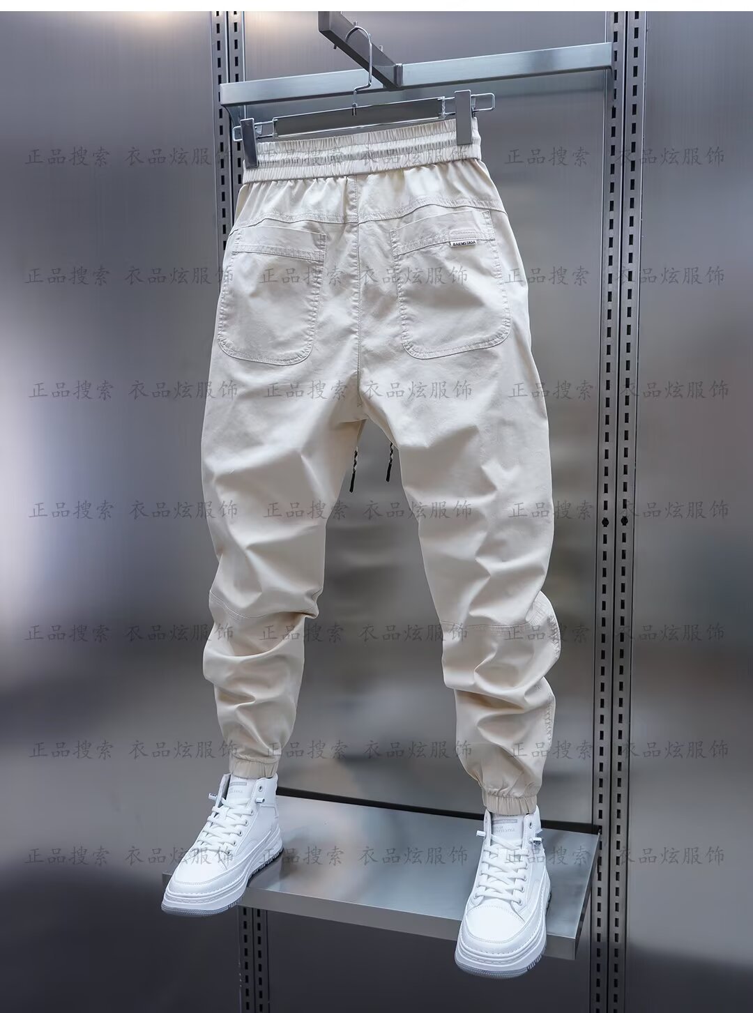 2025 봄과 가을 새로운 남자 캐주얼 바지 솔리드 컬러 Stappy 허리 발목 바지 올 매치 한국식 슬림핏 작은 발 클리퍼스스토어 가기
