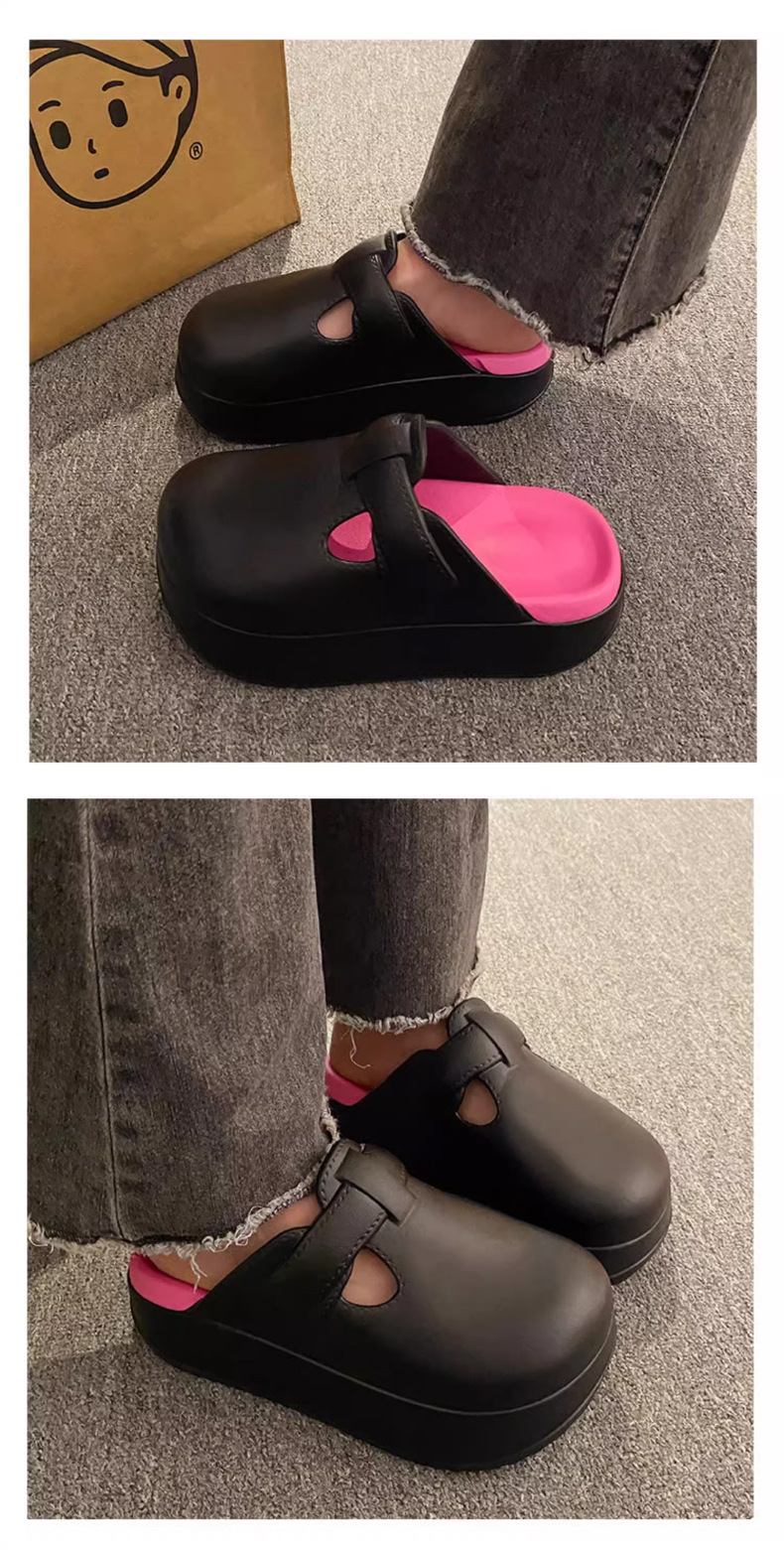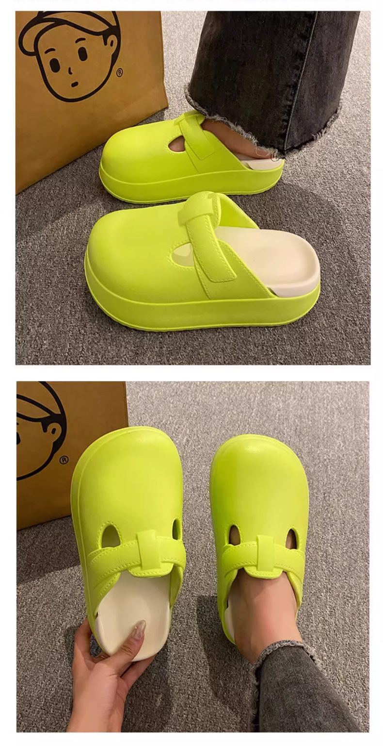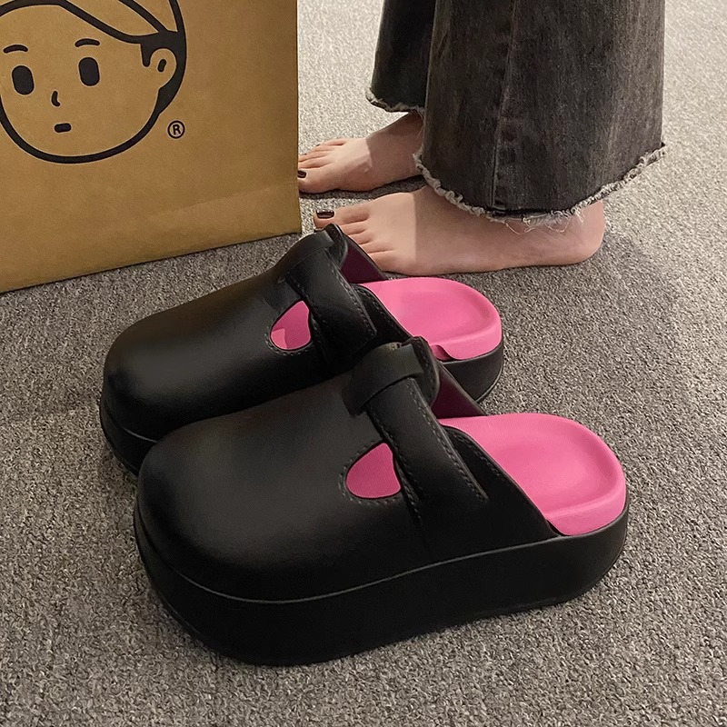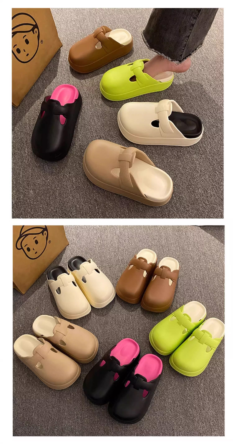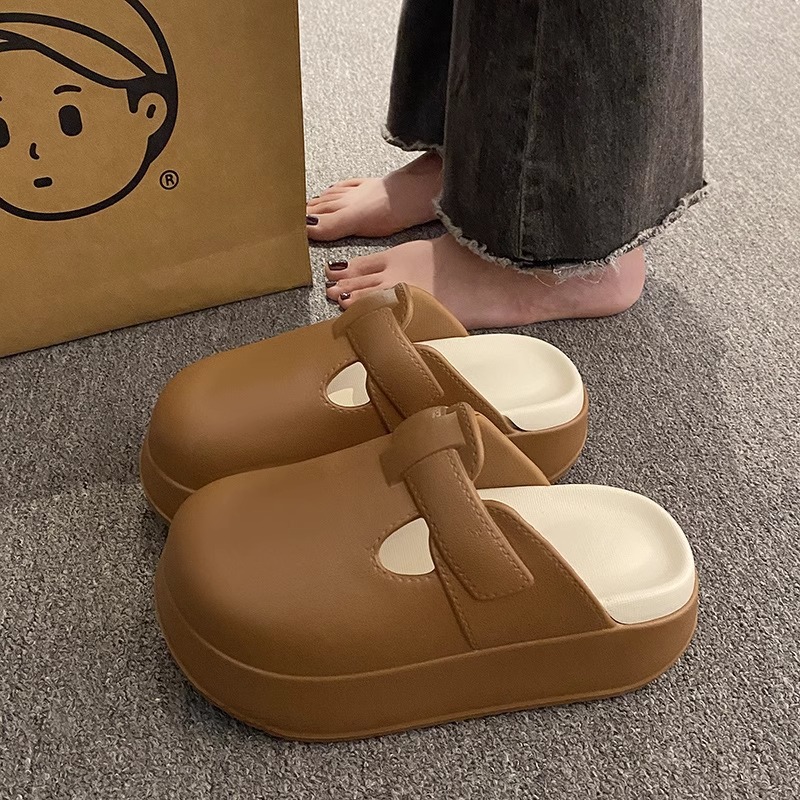 25 개의 새로운 EVA 두꺼운 바닥 강화 된 Baotou 하프 슬리퍼 게으른 Boken 여자 올 매치 샌들 미끄럼 방지 국경 도매스토어 가기