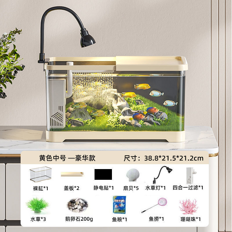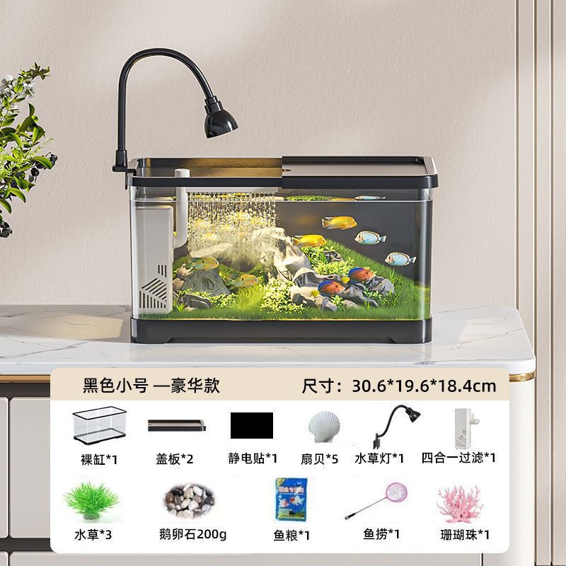 물고기 탱크 수족관 데스크탑 생태 금붕어 탱크 플라스틱 투명한 거실 풍경 중소 규모 게으른 물 변화 가정용 탱크스토어 가기
