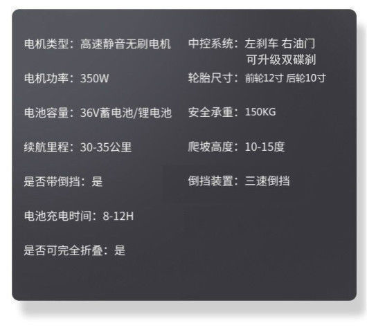 • 흰색 48V 자체 구매 배터리/사이렌 및 선물 가방 없음
