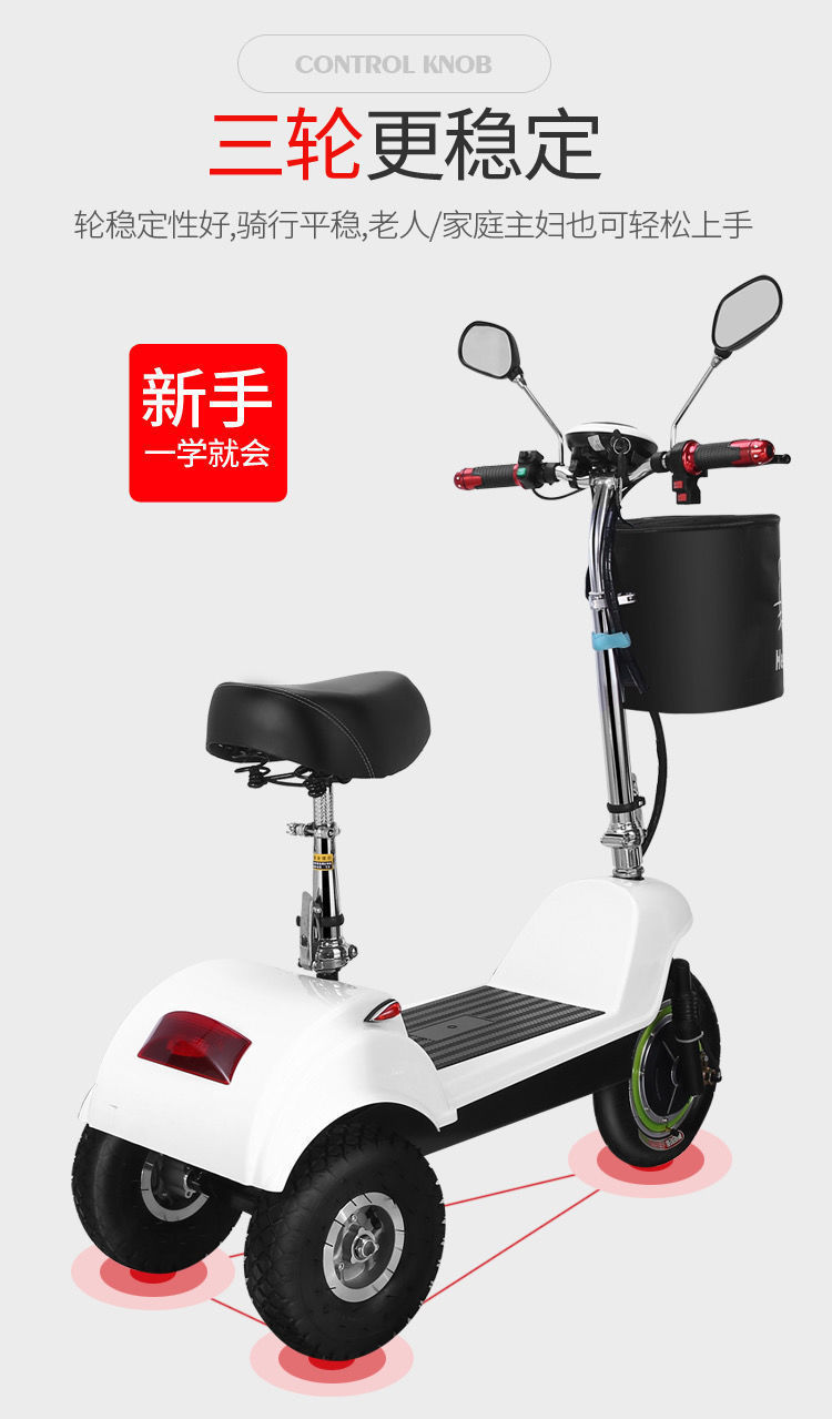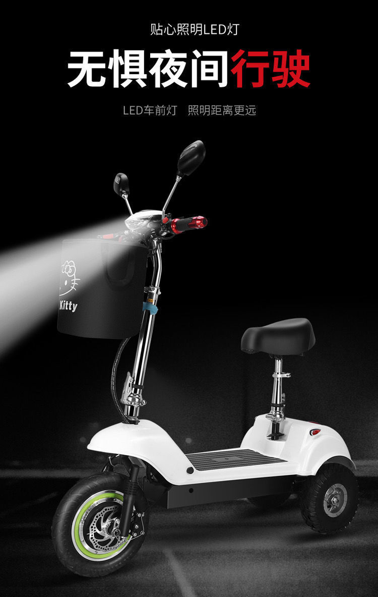 새로운 돌고래 전기 세발 자전거 2 인승 소형 미니 접이식 전기 리튬 배터리 남성과 여성의 배터리 자동차스토어 가기
