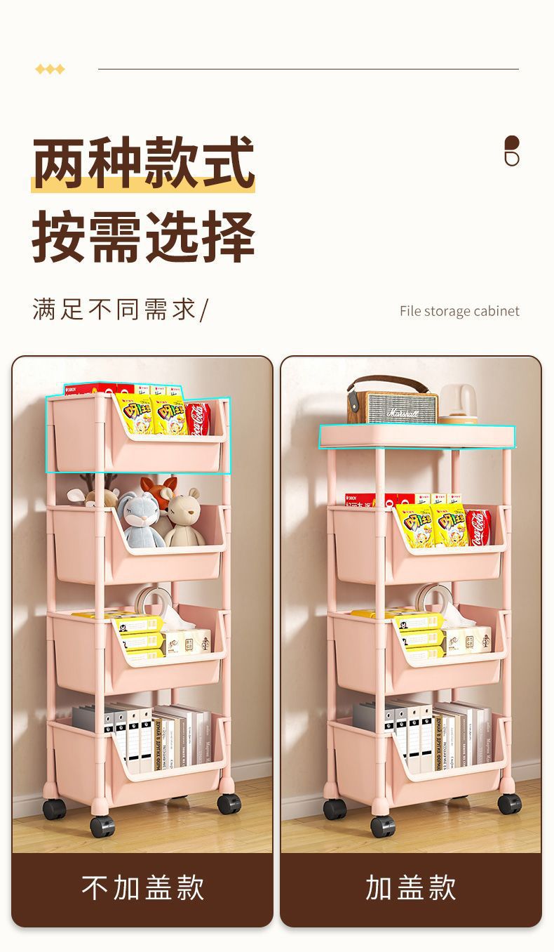 작은 카트 저장 랙 바닥 다층 가정용 이동식 장난감 스낵 저장 책장 주방 과일 및 야채 랙