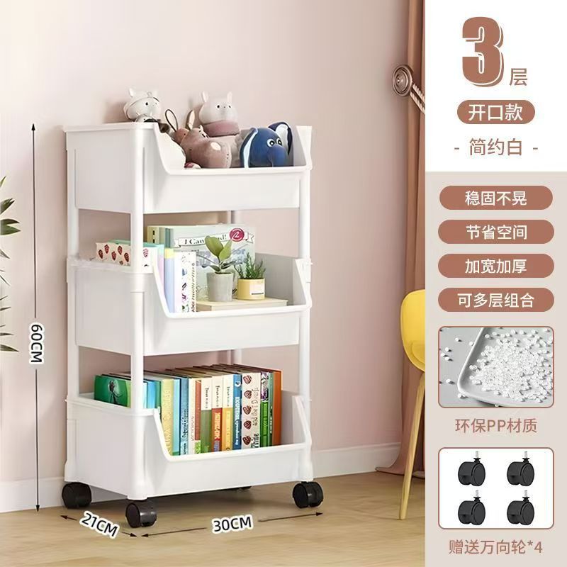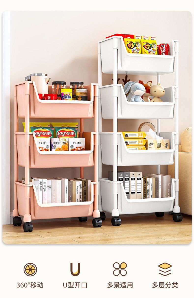 작은 카트 저장 랙 바닥 다층 가정용 이동식 장난감 스낵 저장 책장 주방 과일 및 야채 랙스토어 가기
