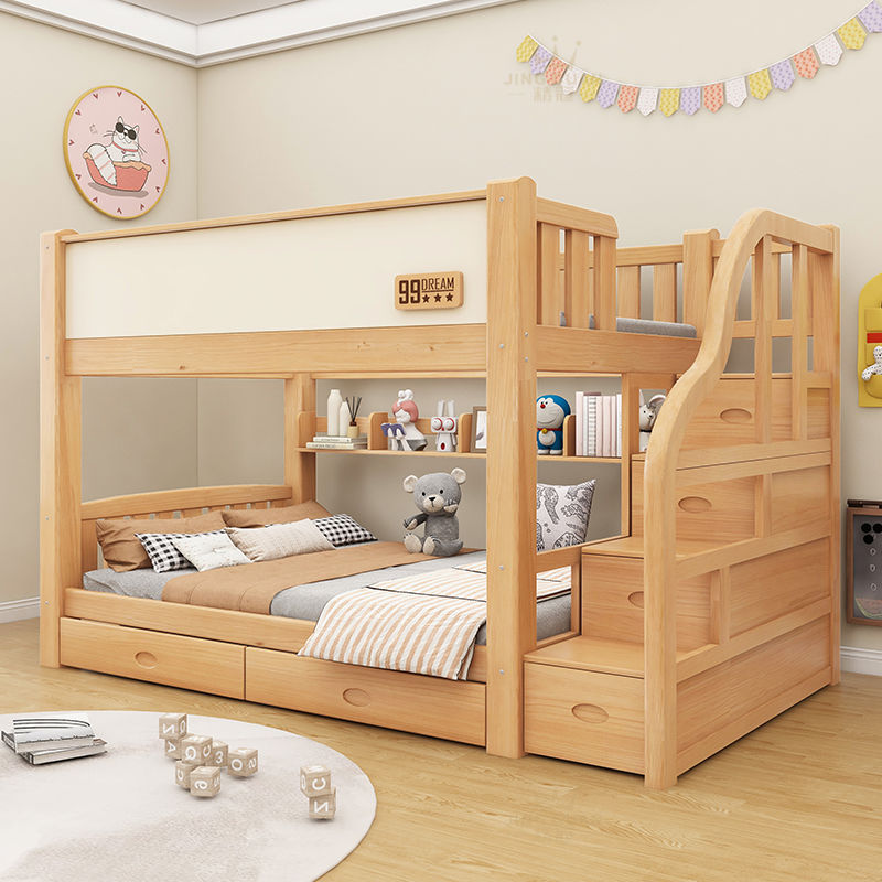 플레이트 솔리드 우드 볼드 침대 작은 아파트 어린이 어머니 침대 가구 다기능 낮은 침대 기숙사 이층 침대스토어 가기