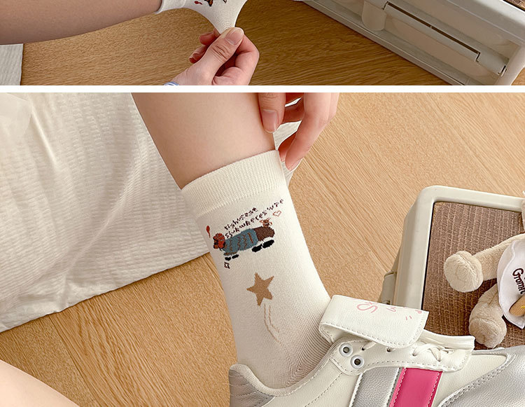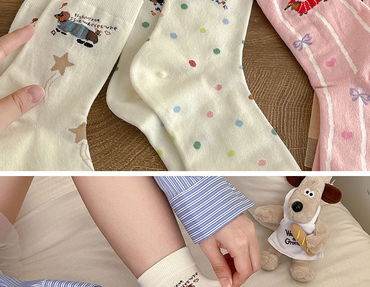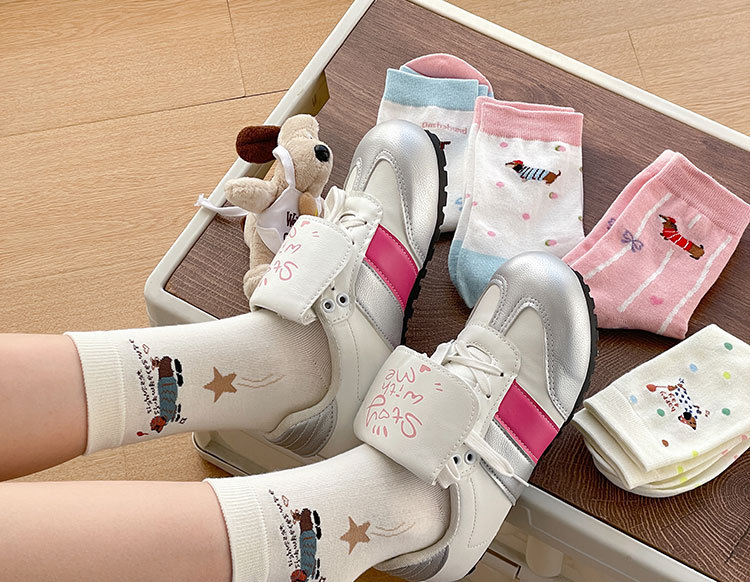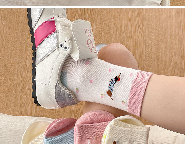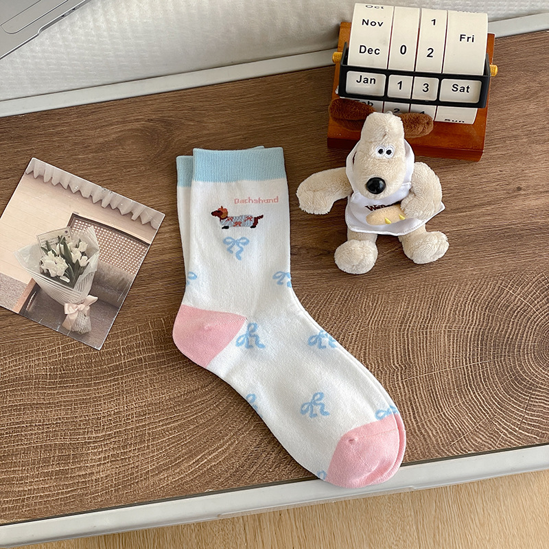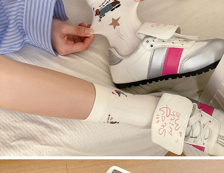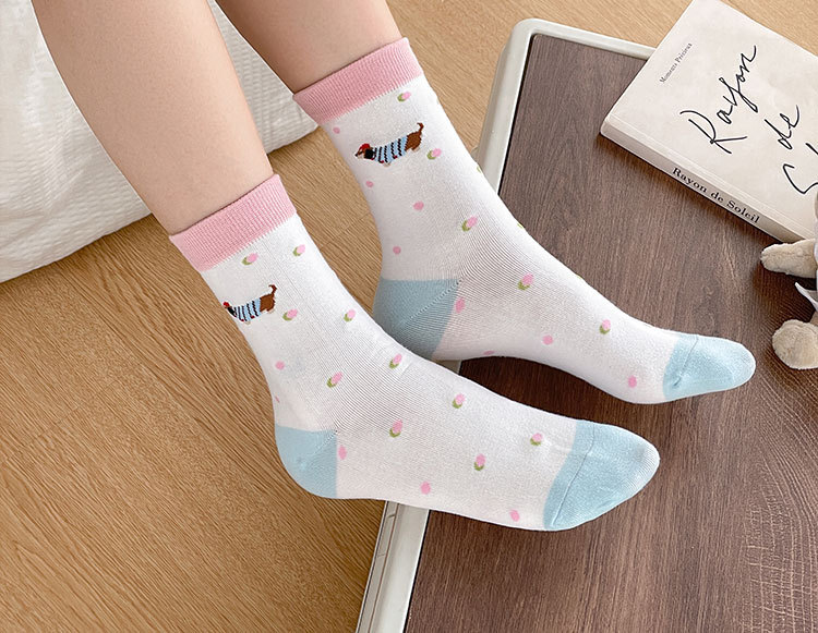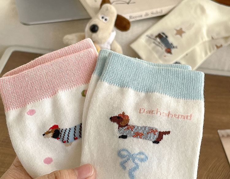 만화 소시지 강아지 양말 여성의 중간 길이 양말 Ins 유행 주지 봄 여름 가을 일본 귀여운 소녀 스타킹