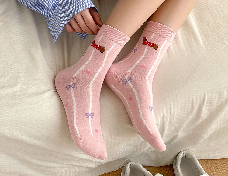 만화 소시지 강아지 양말 여성의 중간 길이 양말 Ins 유행 주지 봄 여름 가을 일본 귀여운 소녀 스타킹스토어 가기