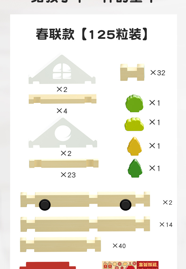 • 루반 장붓구멍과 장부 빌딩 블록 125개 [봄 대련 스타일]