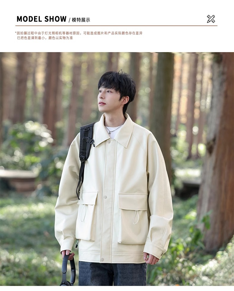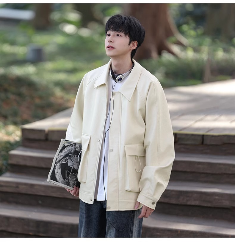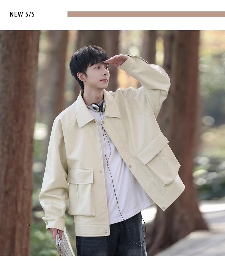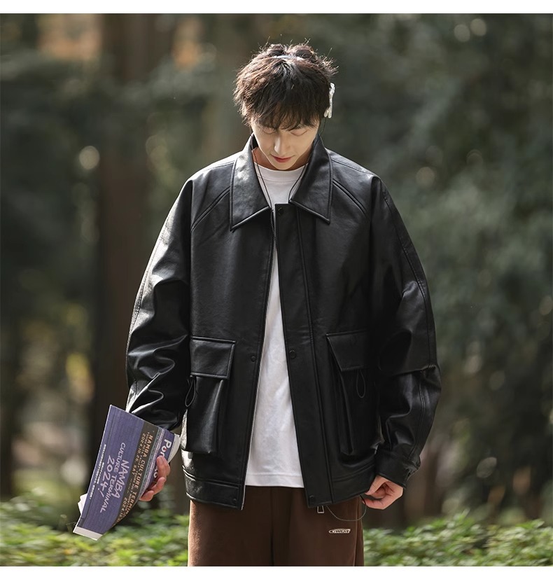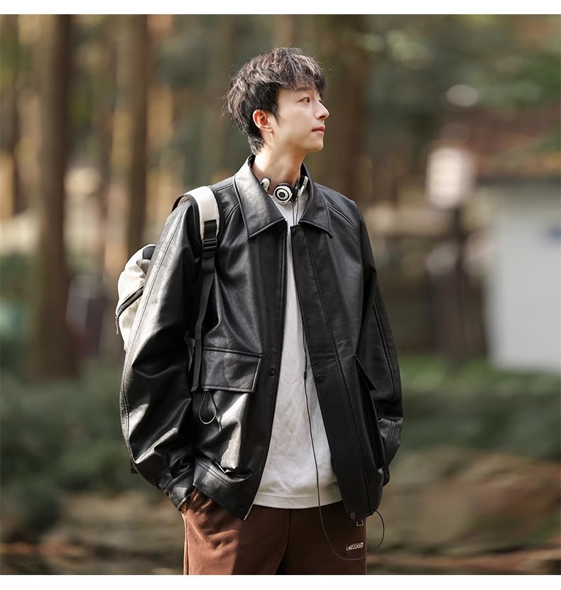 NASA 옷깃 가죽 자켓 남자의 봄과 가을 2025 오토바이 스타일 미국 스타일 야외 느슨한 도구 가죽 자켓