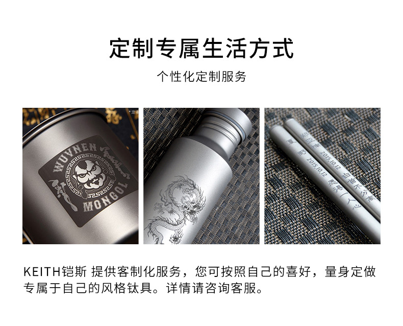 KEITH 장갑 새로운 순수 티타늄 주전자 창조적 인 패턴 컵 경량 코팅되지 않은 티타늄 주전자 [매진]]스토어 가기