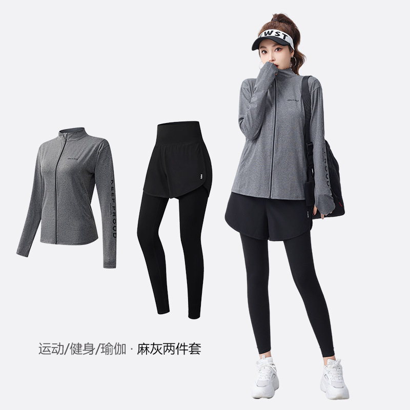 요가 피트니스 의류 세트 스포츠 러닝 체육관 플러스 사이즈 통통녀 스커트 카디건 2 피스 세트 슬림 룩 루즈스토어 가기