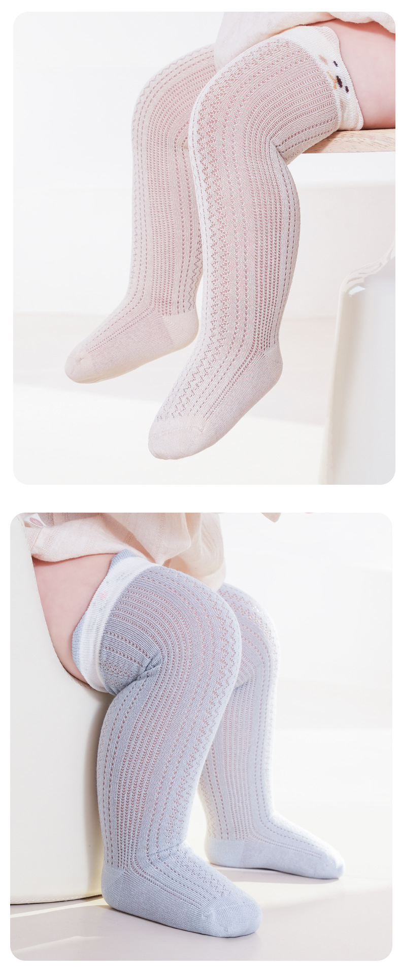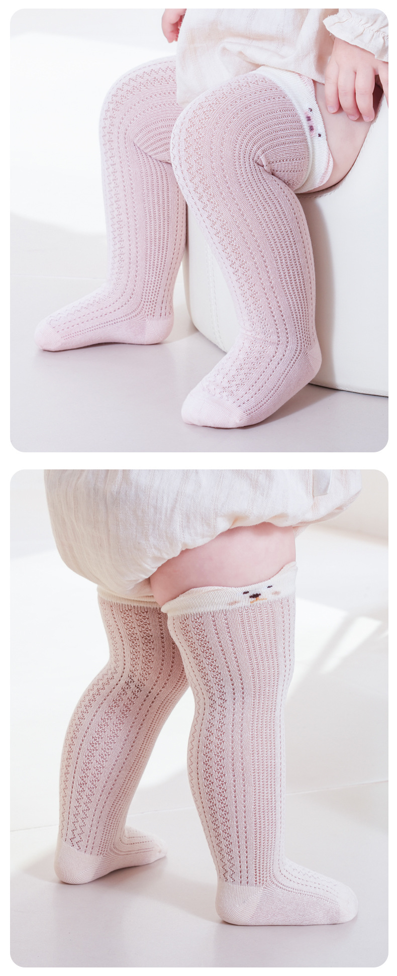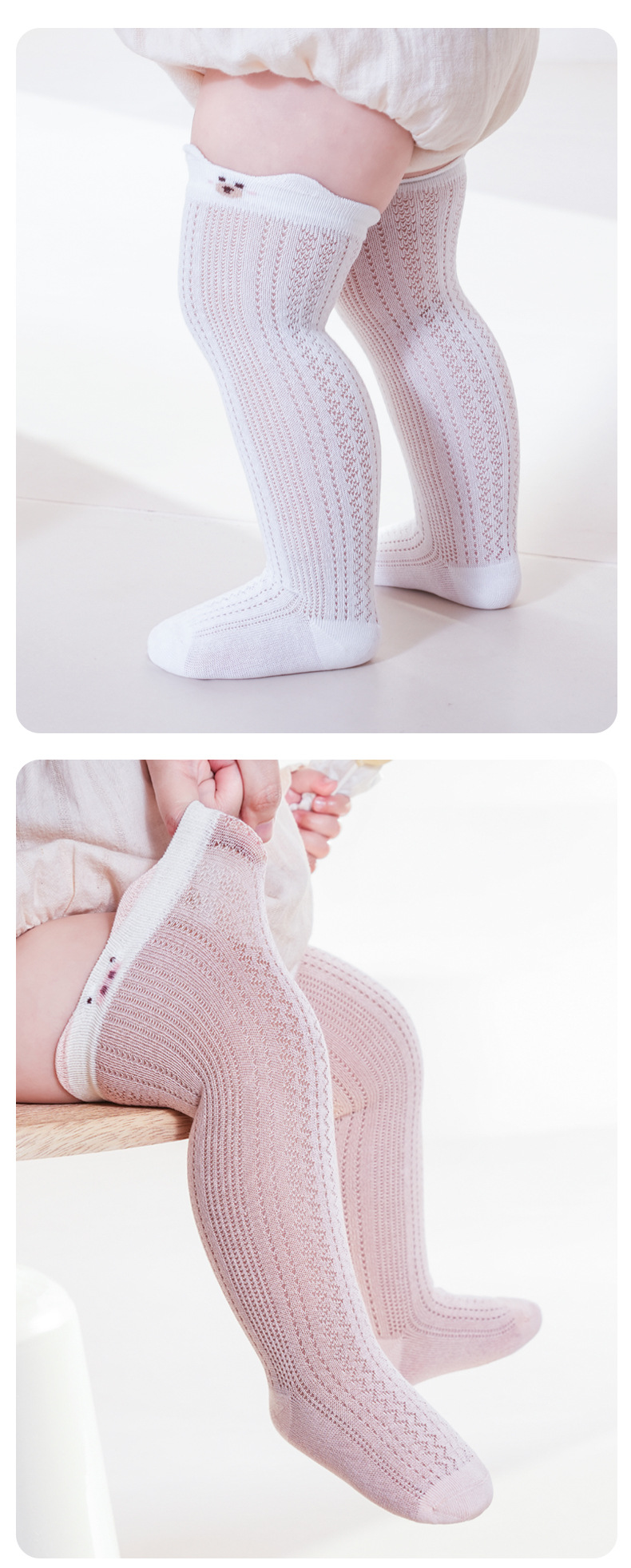 뼈없는 면 양말 여름 얇은 아기 무릎 스타킹 아기 어린이 메쉬 양말 귀여운 만화 통기성