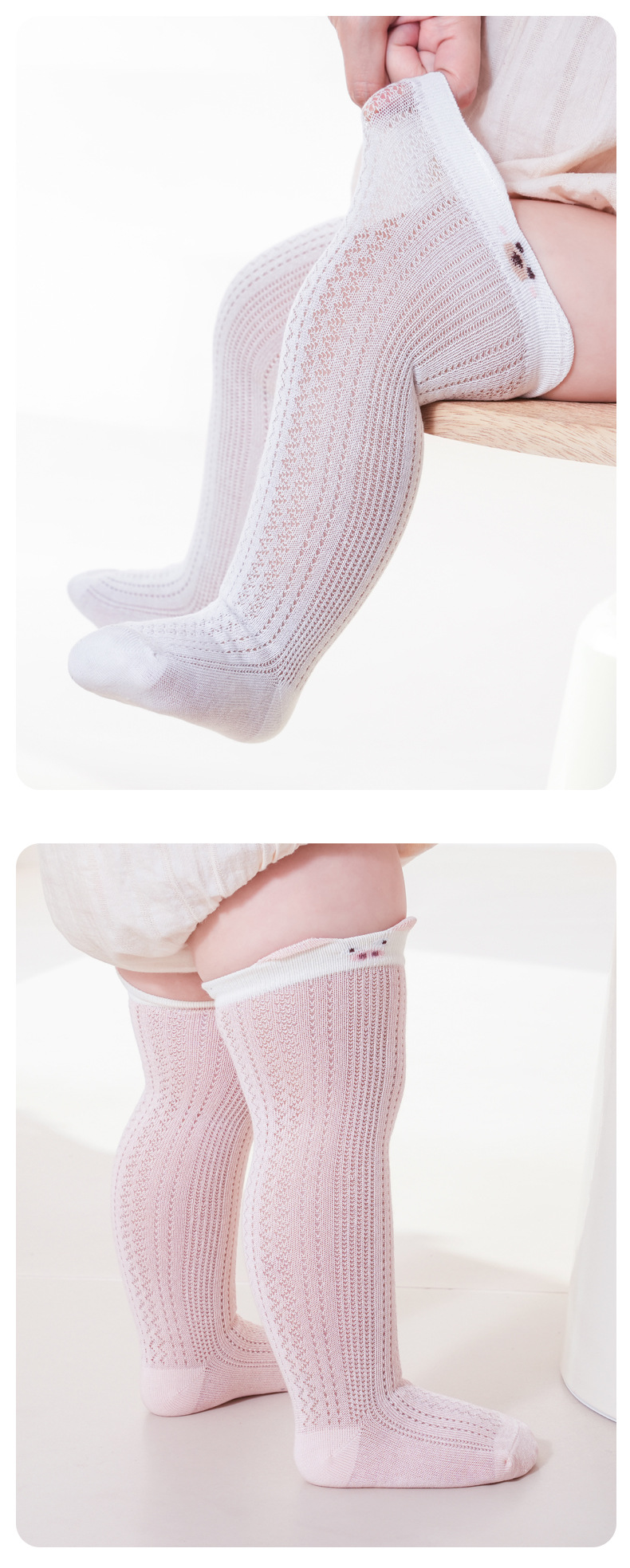 뼈없는 면 양말 여름 얇은 아기 무릎 스타킹 아기 어린이 메쉬 양말 귀여운 만화 통기성스토어 가기