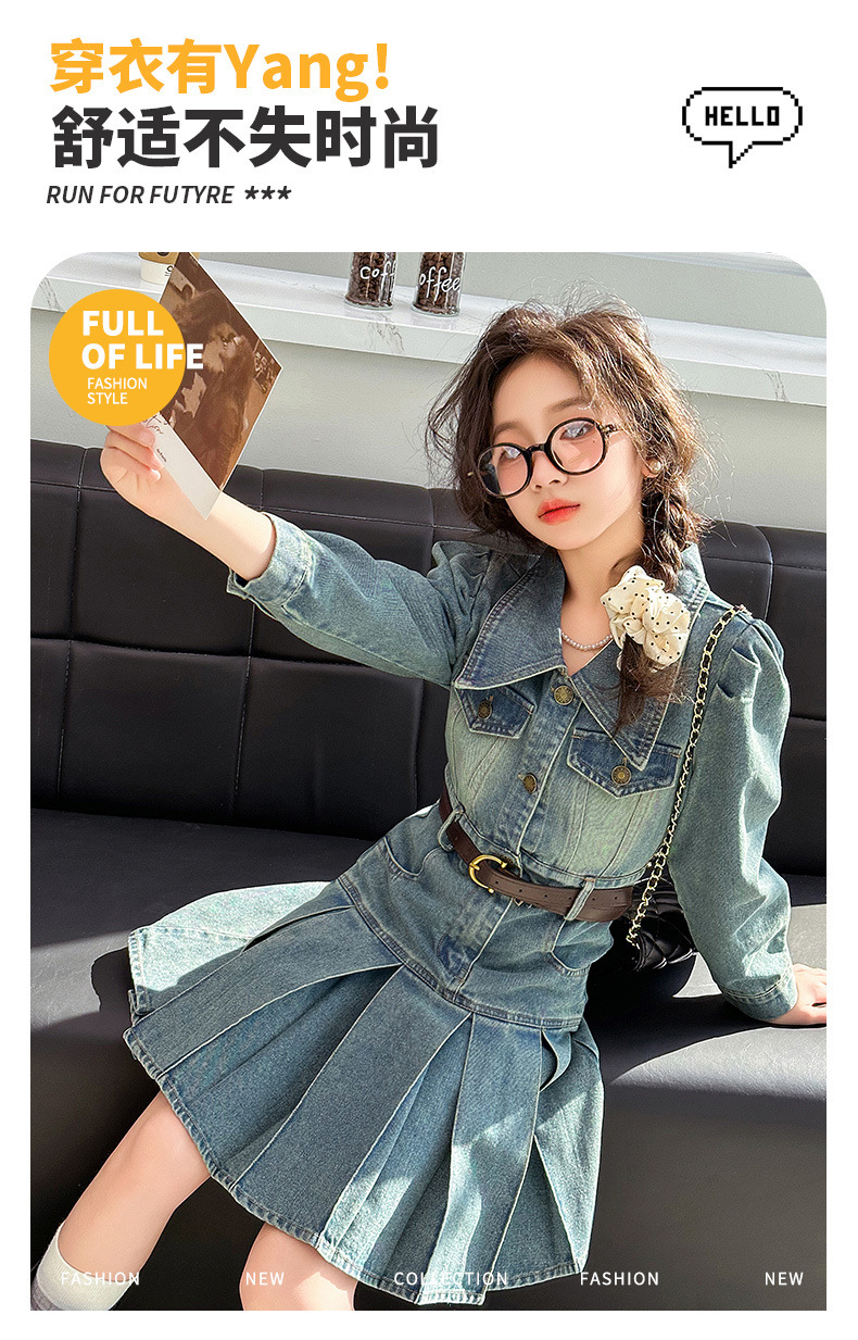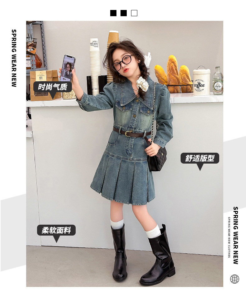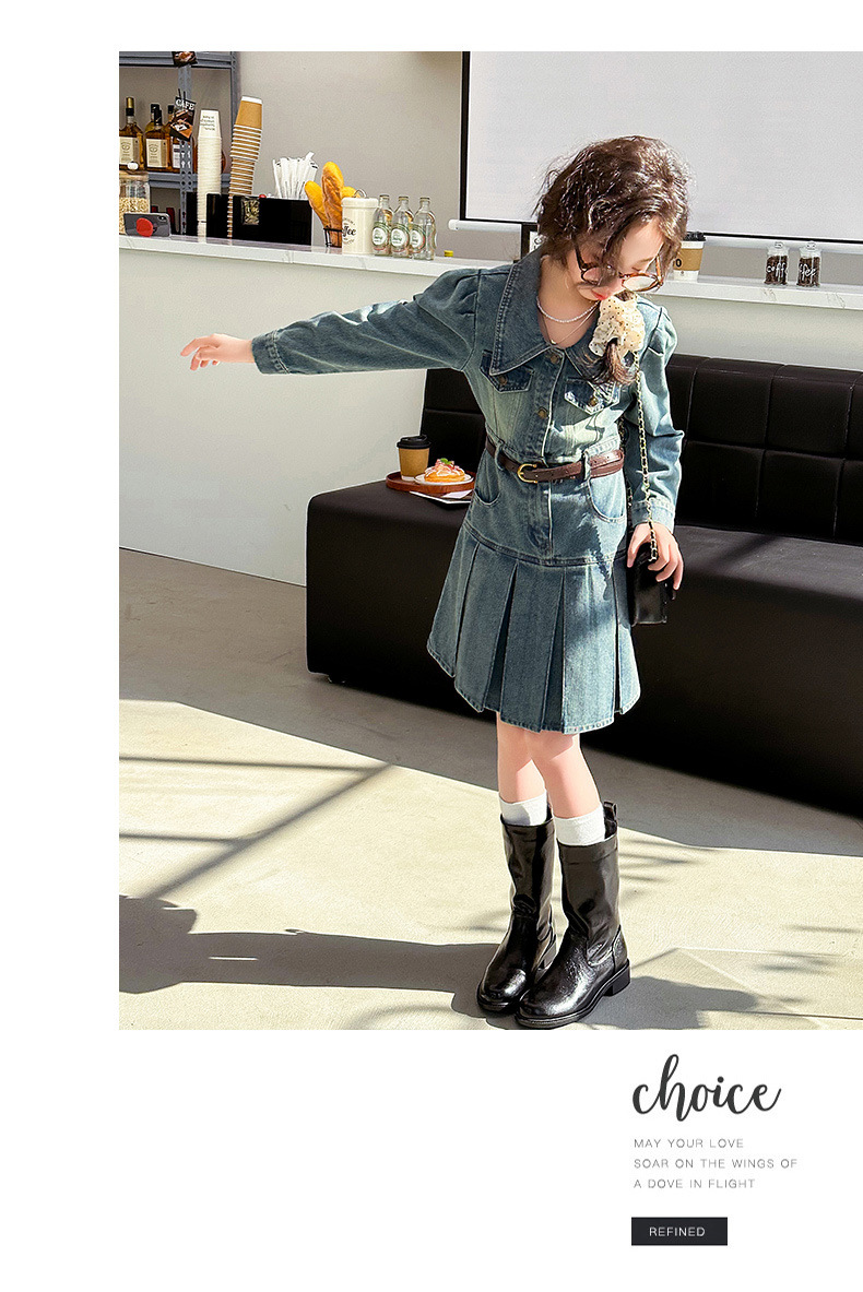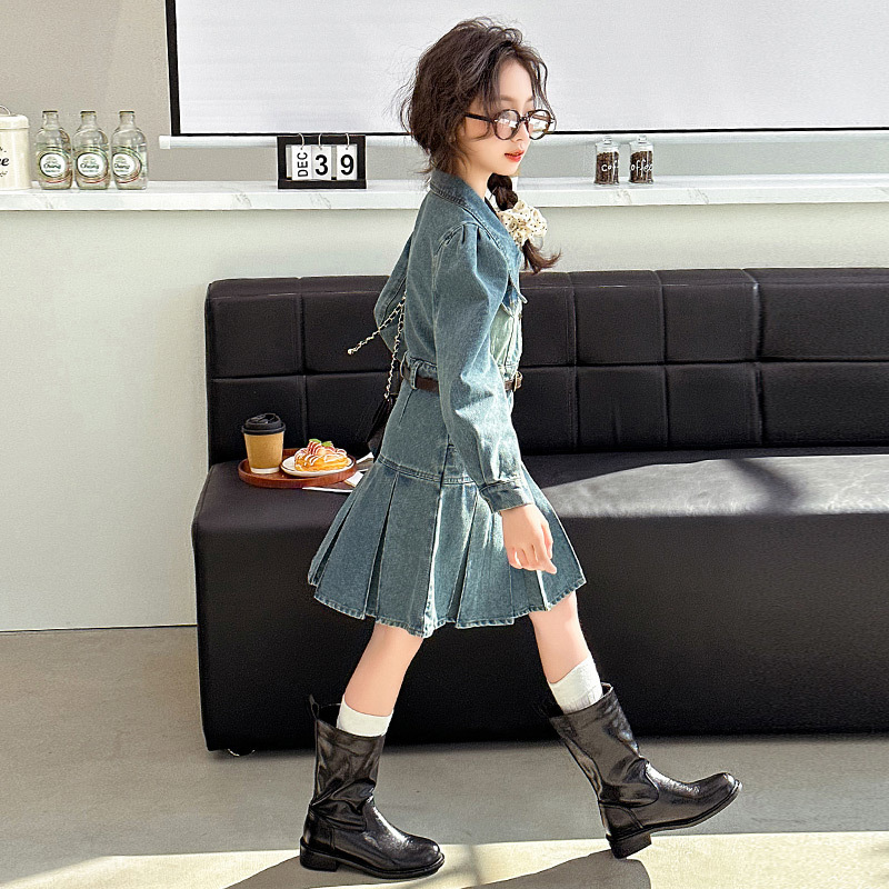 소녀 데님 원피스 봄 가을 온라인 인기 외국 스타일 2024 새로운 어린이 치마 주름 봄 소녀 공주 치마스토어 가기
