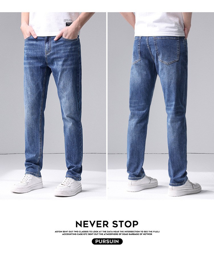 청바지 남자 가을 스트레치 2025 새로운 패션 캐주얼 바지 남자 올 매치 트렌디 슬림 핏 스트레이트 바지 남자스토어 가기