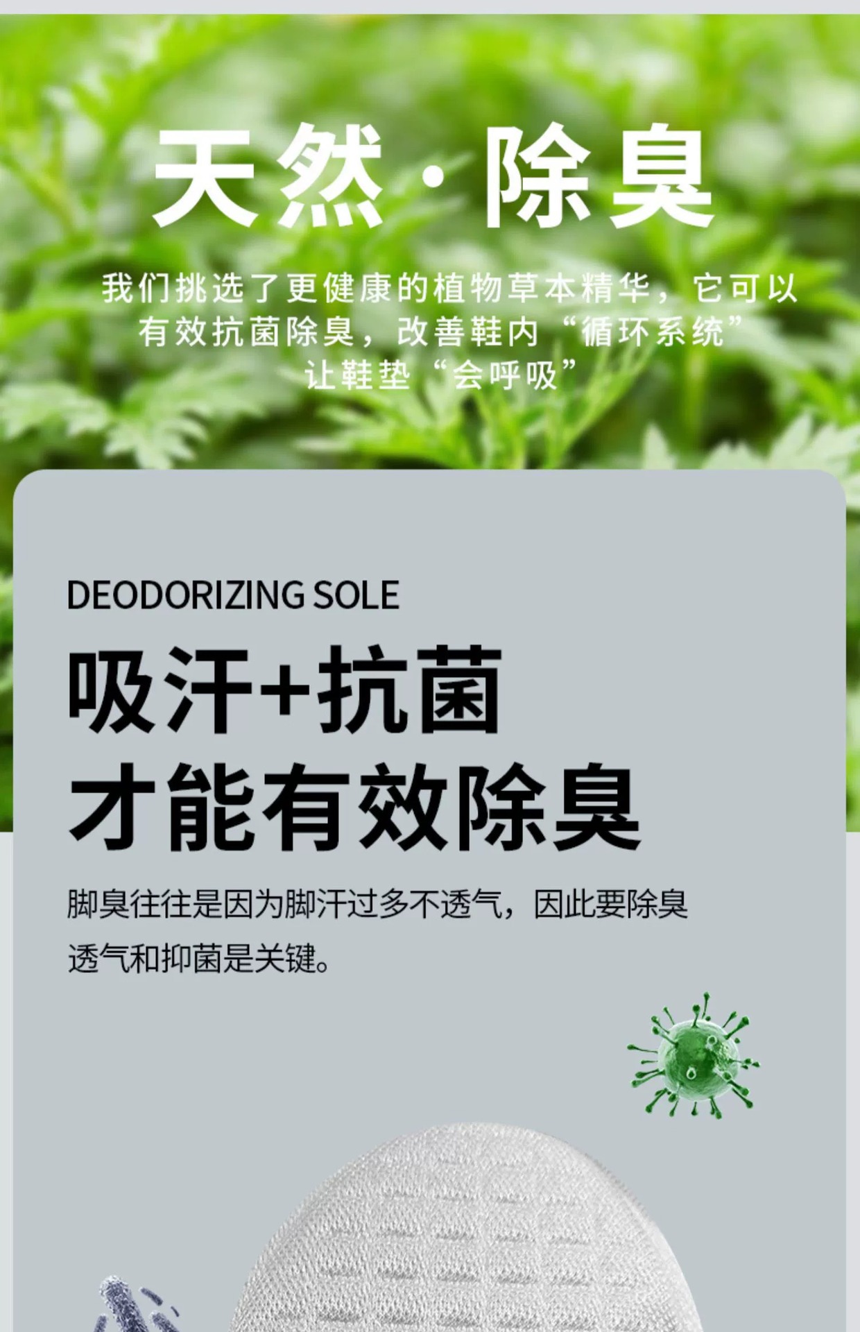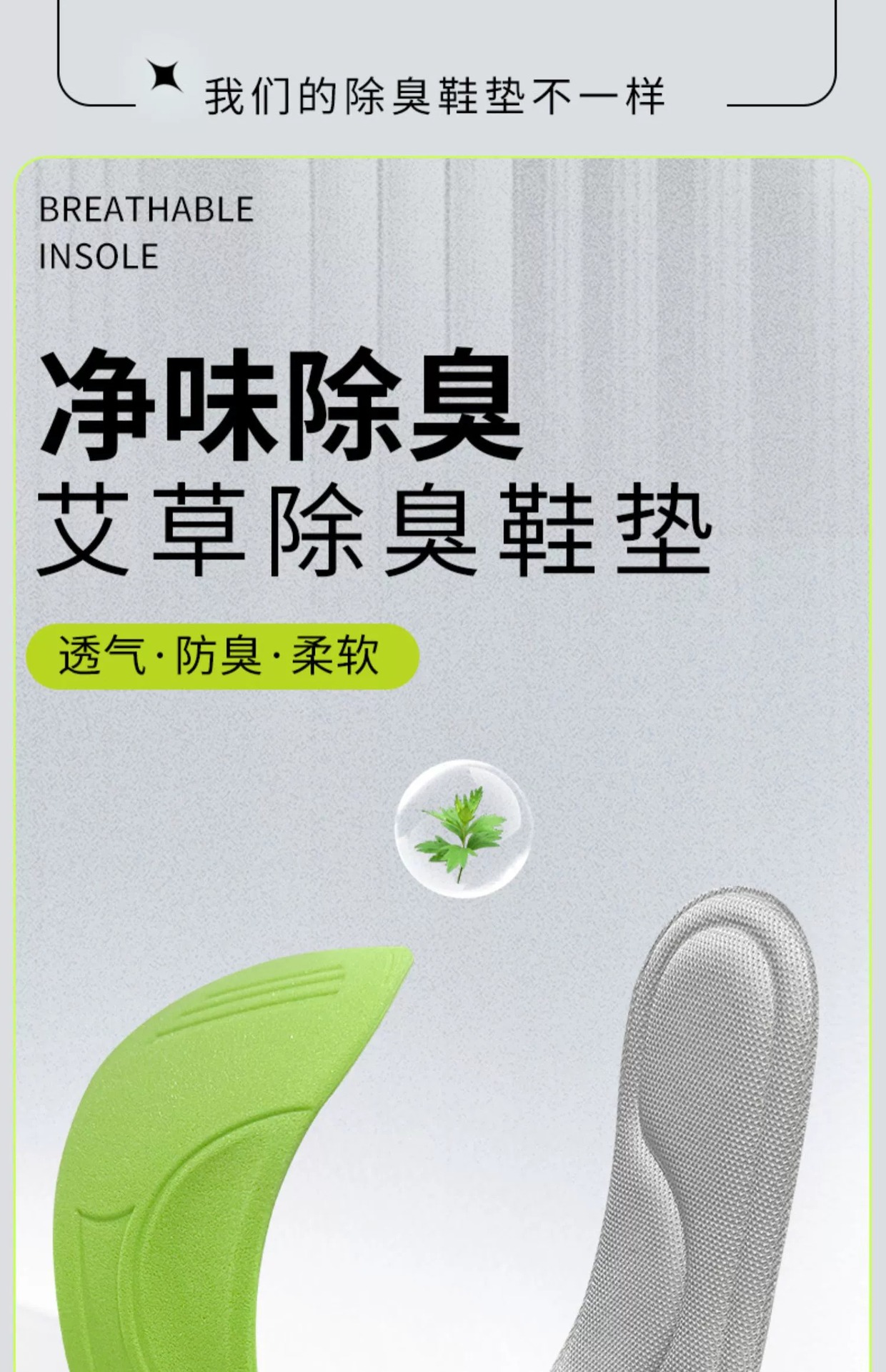 • [1쌍] 쑥 탈취丨땀이 많은 발 전용丨그린 베이스와 그레이 표면