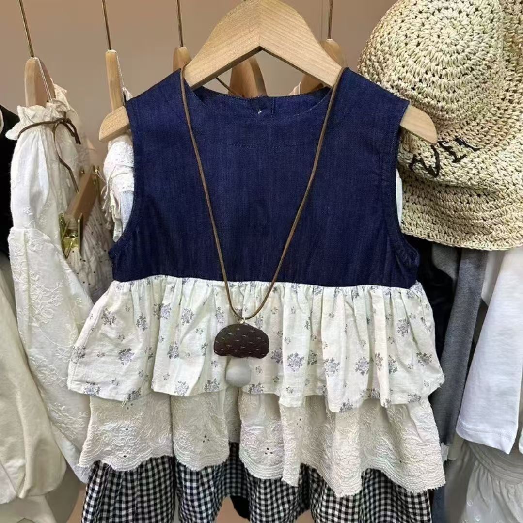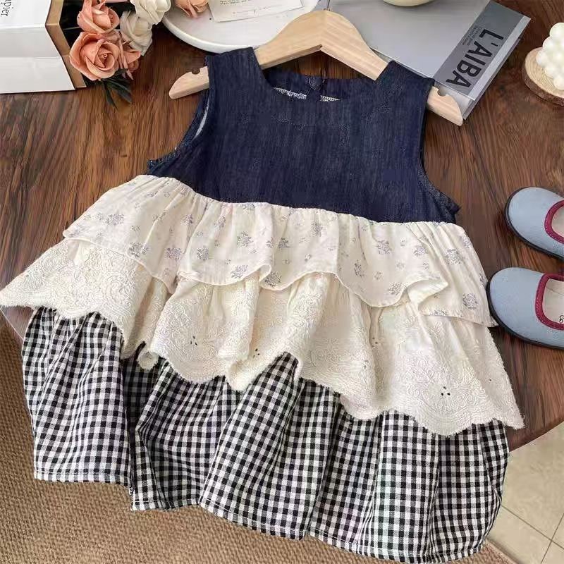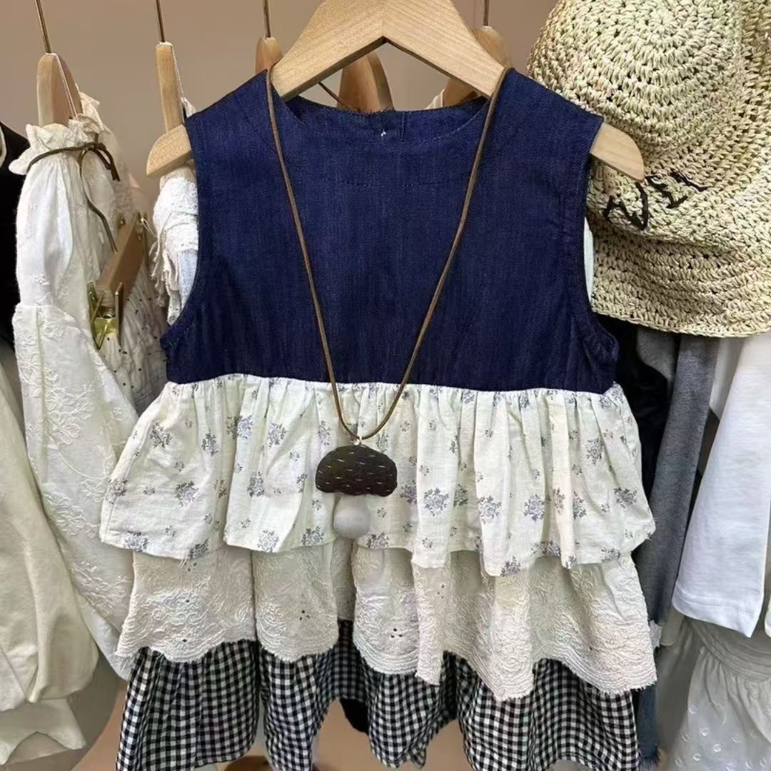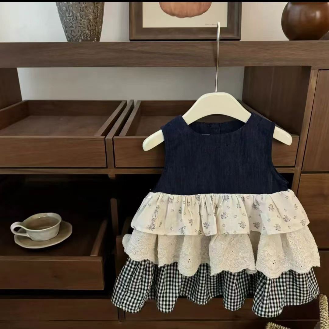 소녀의 민소매 선드레스 어린이 꽃 무늬 바느질 케이크 스커트 아기의 원피스 스커트 여성용 스커트스토어 가기