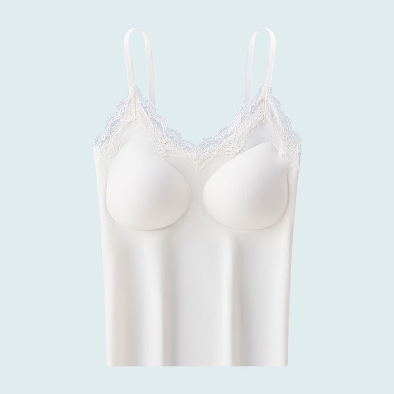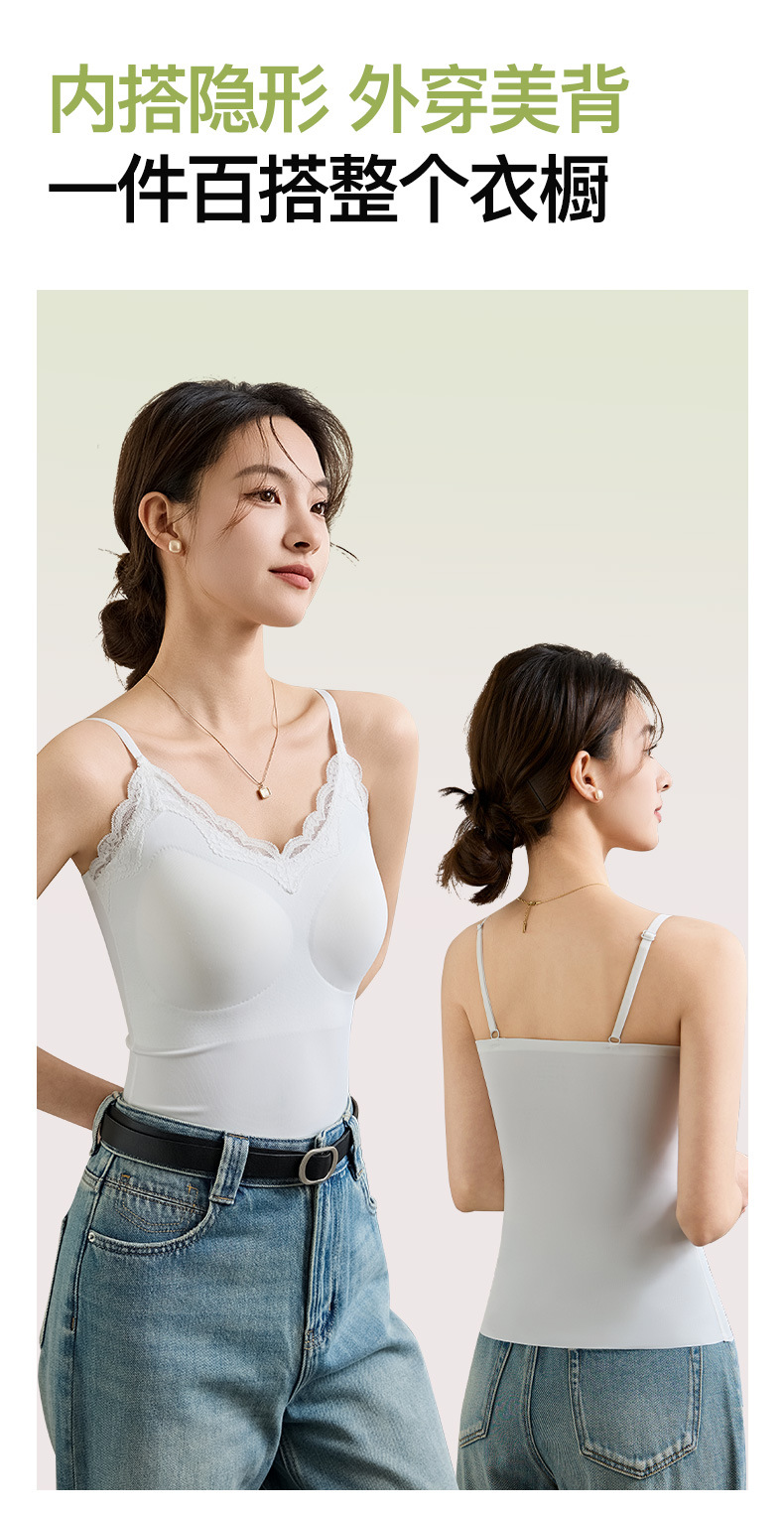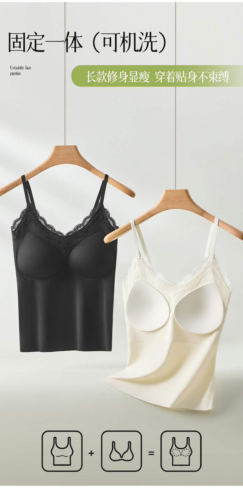 아이스 실크 심리스 레이스 뷰티 백 캐미솔 여성용 고정 컵 아우터웨어 베이스 긴 캐주얼 다용도 캐미솔스토어 가기