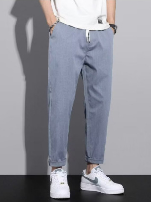 2025 한국식 남자 캐주얼 바지 봄 새로운 느슨한 플러스 사이즈 스포츠 바지 스트레이트 드로스트링 작업 바지 남자스토어 가기