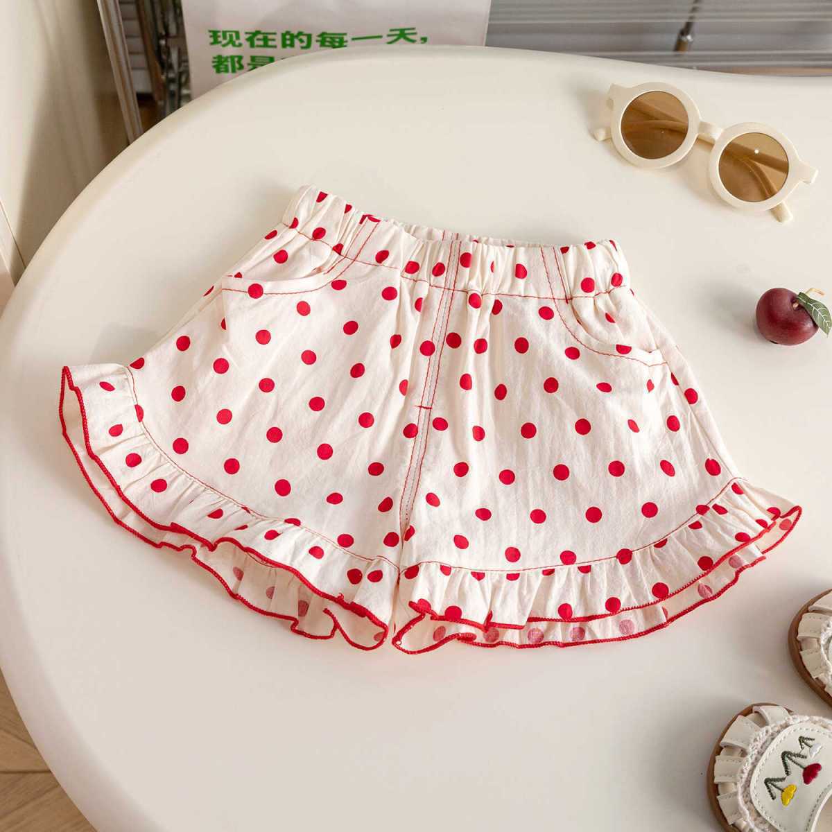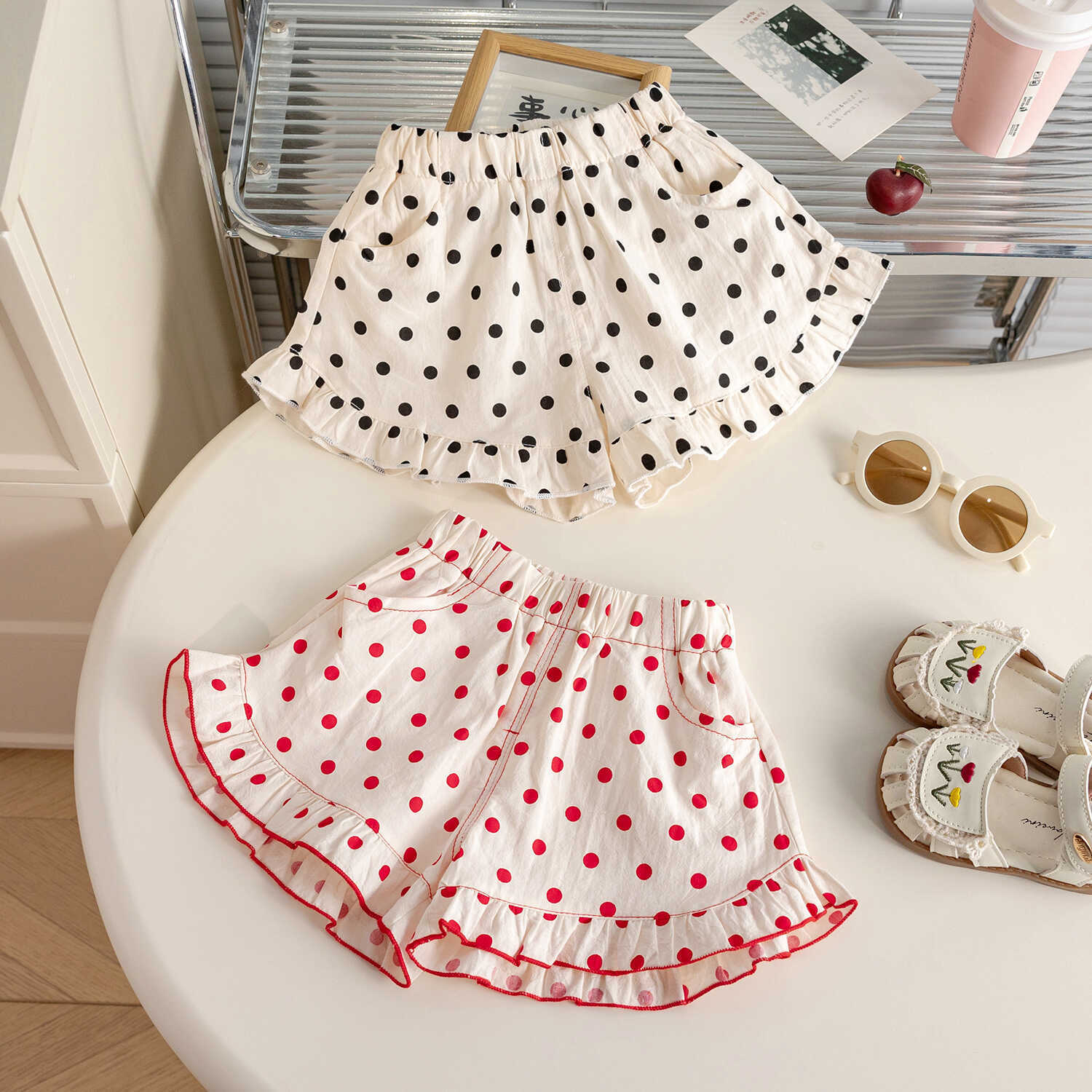 여자 반바지 2025 여름 새로운 한국 스타일 서양식 아기 소녀 얇은 레이스 외부 착용 어린이 폴로 닷 캐주얼 바지스토어 가기